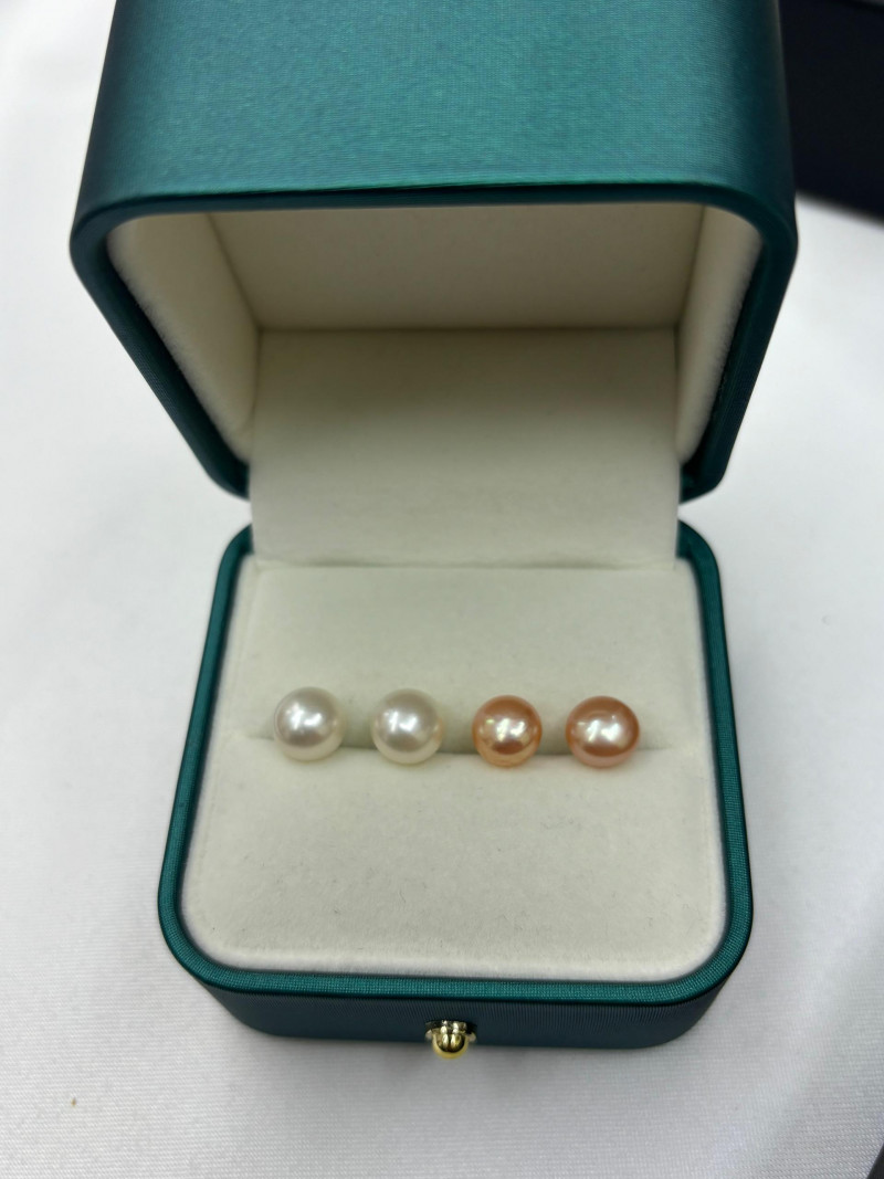 A03 锦鲤色无核淡水珍珠耳钉8-8.5mm#买1送1 #送的是白色的 #带证书