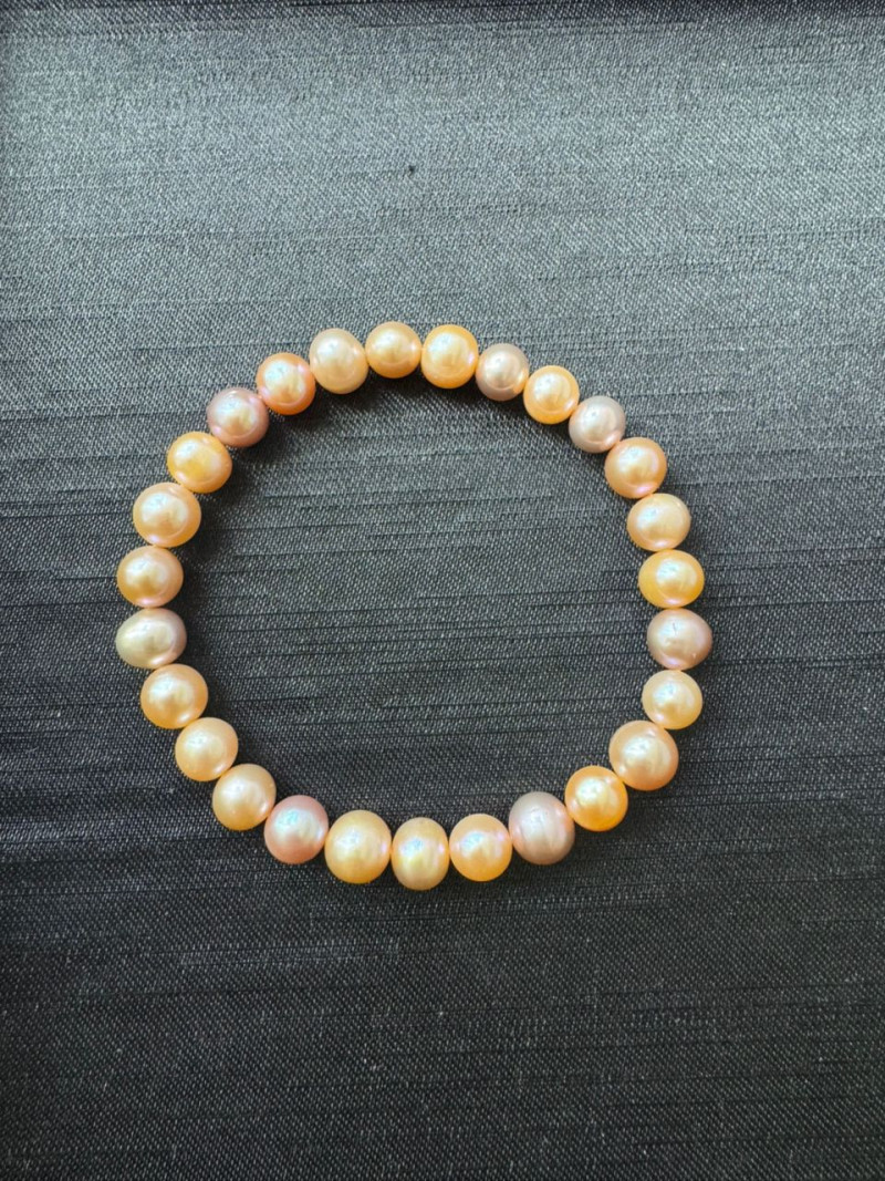B12 糖果色无核淡水珍珠手串7mm #近圆#几乎无暇