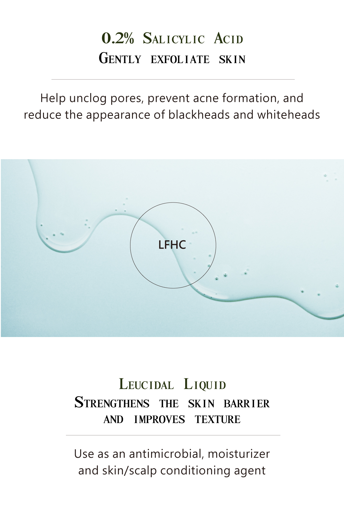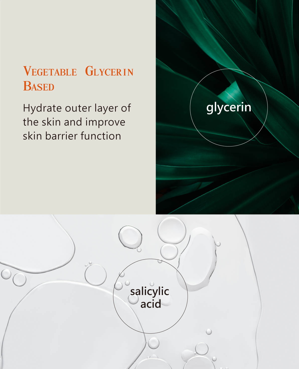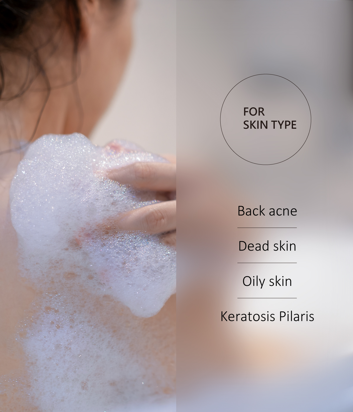 Contains antimicrobial active ingredients and provides moisturizing, firming, and skin-conditioning effects. The 0.2% Salicylic Acid ingredient effectively improves back acne, pimples, and enlarged pores while exfoliating dead skin cells.