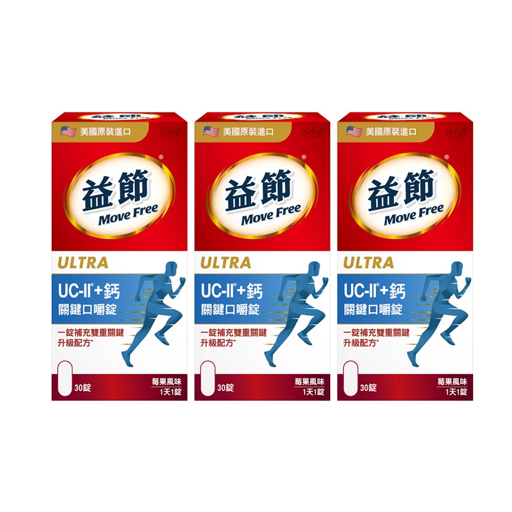 MoveFree益節UC-II+鈣關鍵口嚼錠(30錠*3瓶)