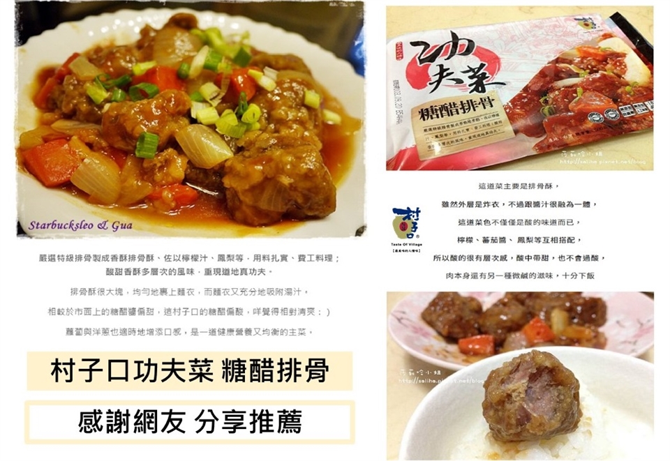 成份:豬排骨、水、蕃茄醬(蕃茄糊、鹽、糖、釀造醋)、洋蔥、糖、紅蘿蔔、鳳梨、雞蛋、地瓜粉、植物油(棕櫚油、大豆油、芥花油)、醬油、梅林辣醬油、香油、檸檬汁、米酒、青蔥、糯米醋(水、糯米、釀造酒精)、粘稠劑(乙醯化己二酸二澱粉)、雞粉(L-麩酸鈉、乳糖、蔗糖、香料、雞肉抽出物、雞油、酵母抽出物)、薑、鹽、五香粉(小茴香、八角、肉桂、丁香、胡荽、香芹)、白胡椒粉、大蒜粉
