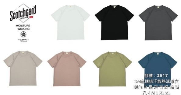 117台製3M急速排汗散熱涼感衣#2517