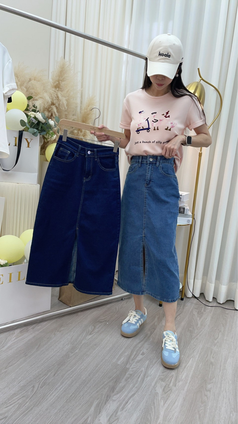 B39款 (7221)前開叉高腰修身牛仔長裙$250