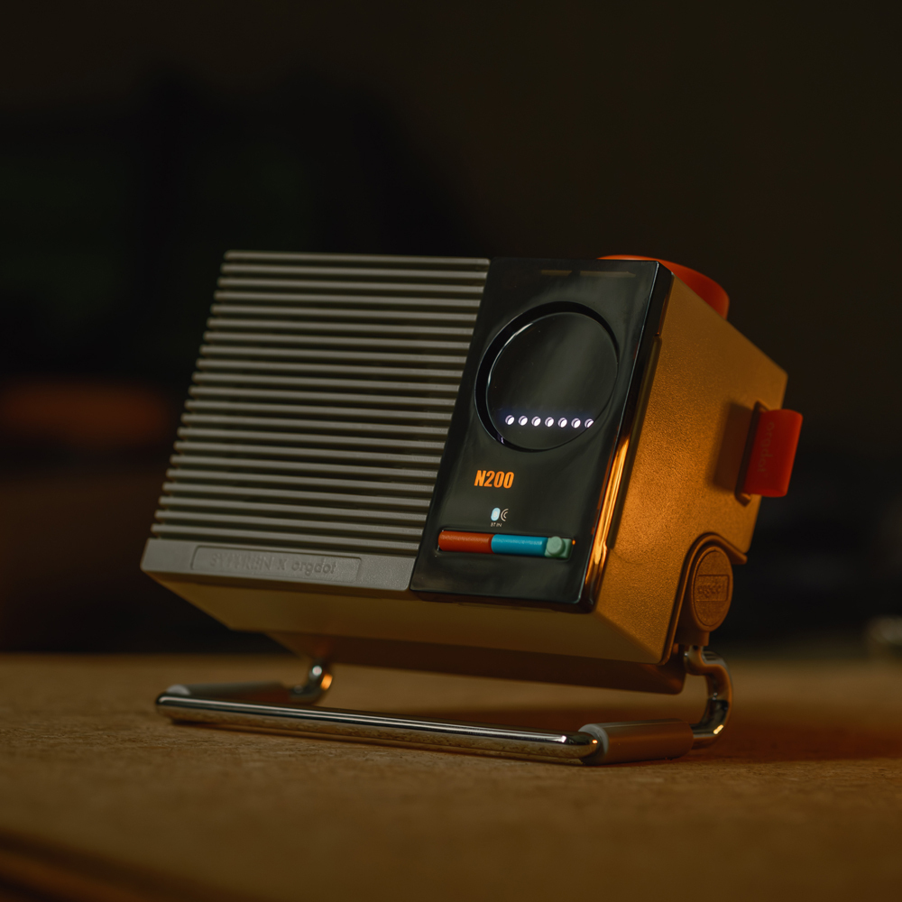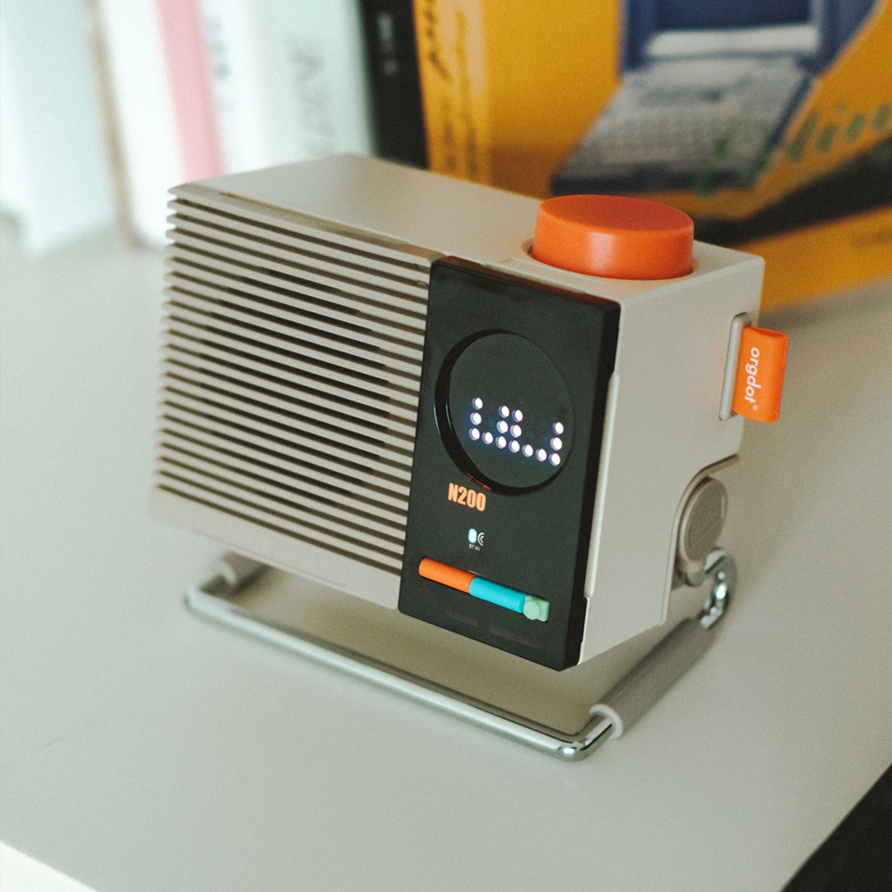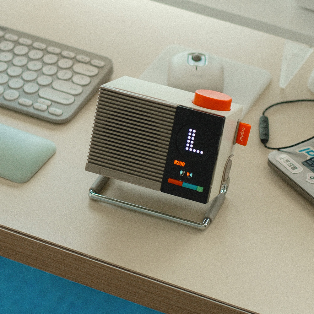N200 藍牙喇叭,把復古質感玩到極致!米白機身搭配亮眼橘色旋鈕,搭上趣味十足的點陣顯示螢幕,每一次操作都像是一場互動小秀。小巧機身卻內建雙單體,音質澎湃立體,還能透過 TWS 串聯兩台喇叭,立刻變身迷你派對神器。可調式金屬支架讓你自由調整角度,無論擺在書桌、客廳或聚會現場,都能瞬間成為焦點。既是好聽的音樂夥伴,也是超有型的時尚擺設!