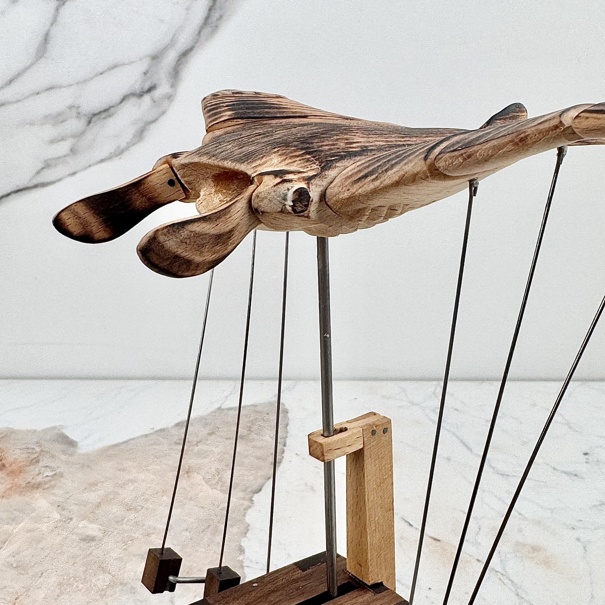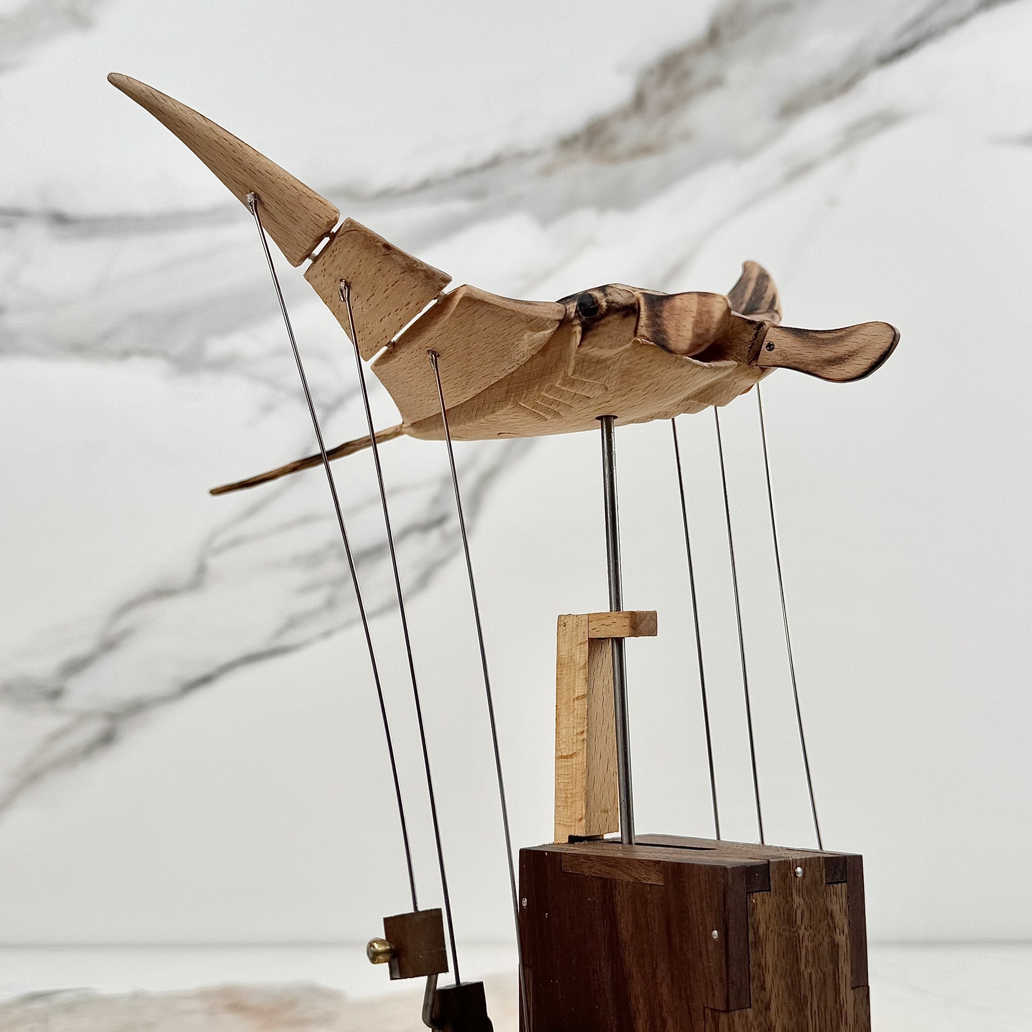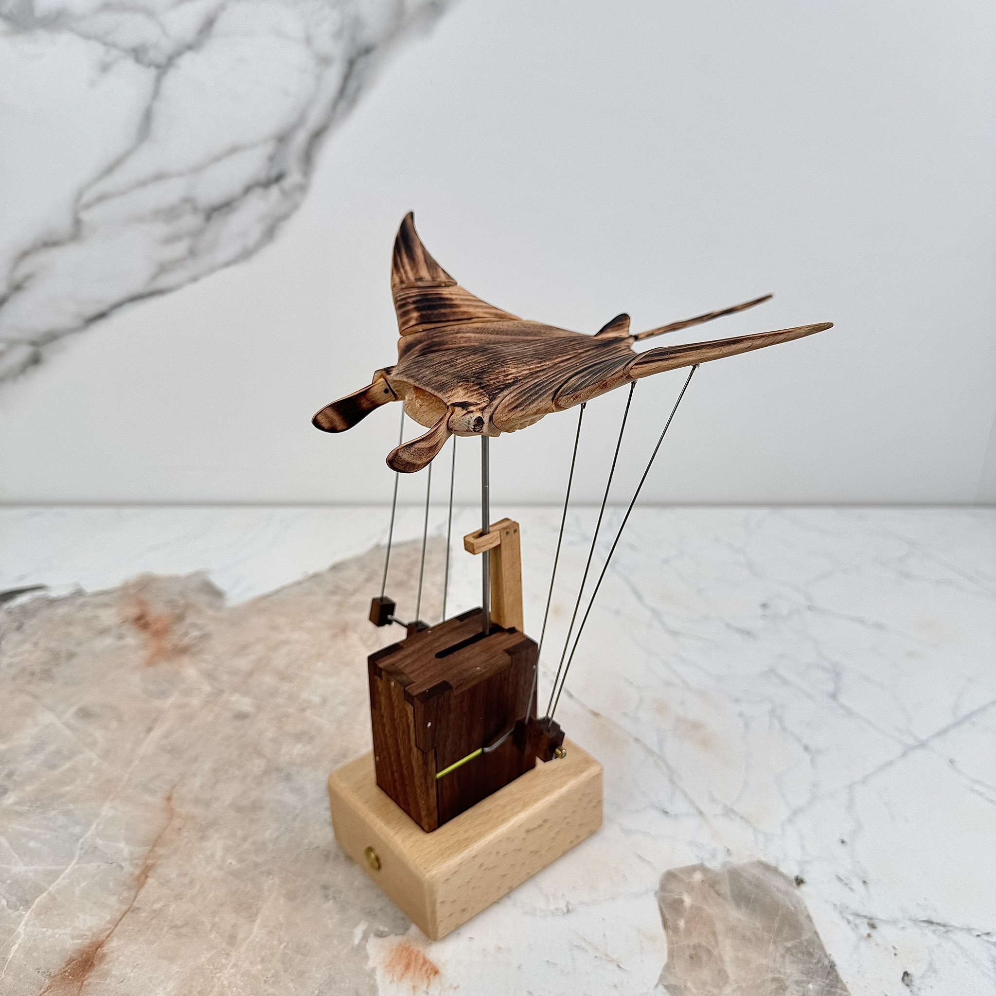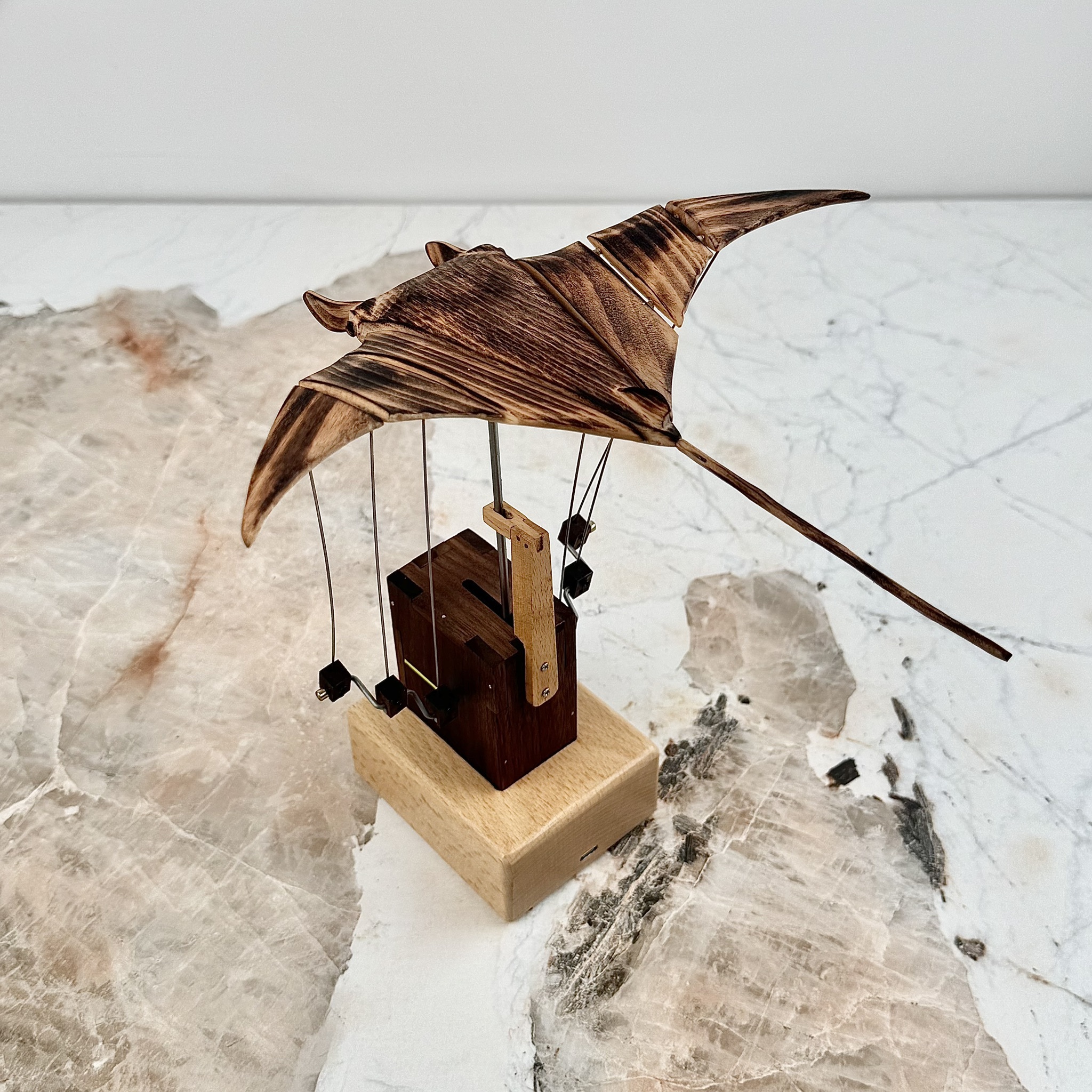 純手工 飛翔的魔鬼魚/充電式木製擺飾/櫸木+胡桃木手工藝品/象徵自由與守護魔鬼魚/仿生獸 手工擺件