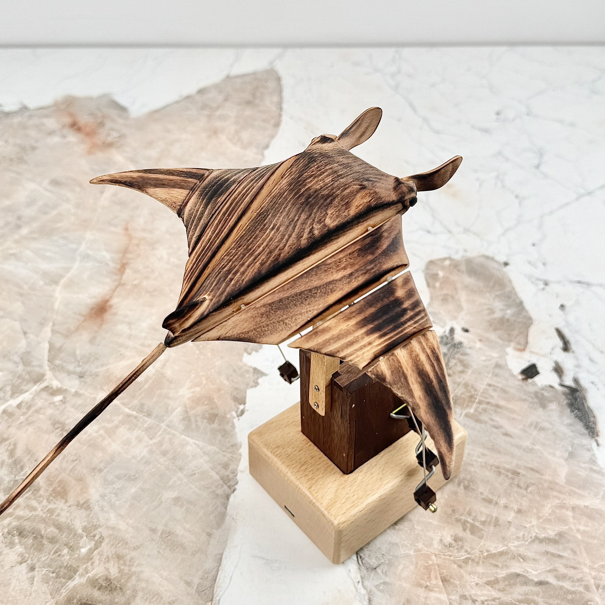 純手工 飛翔的魔鬼魚/充電式木製擺飾/櫸木+胡桃木手工藝品/象徵自由與守護魔鬼魚/仿生獸 手工擺件 木製品 黑胡桃木 靈動 療癒