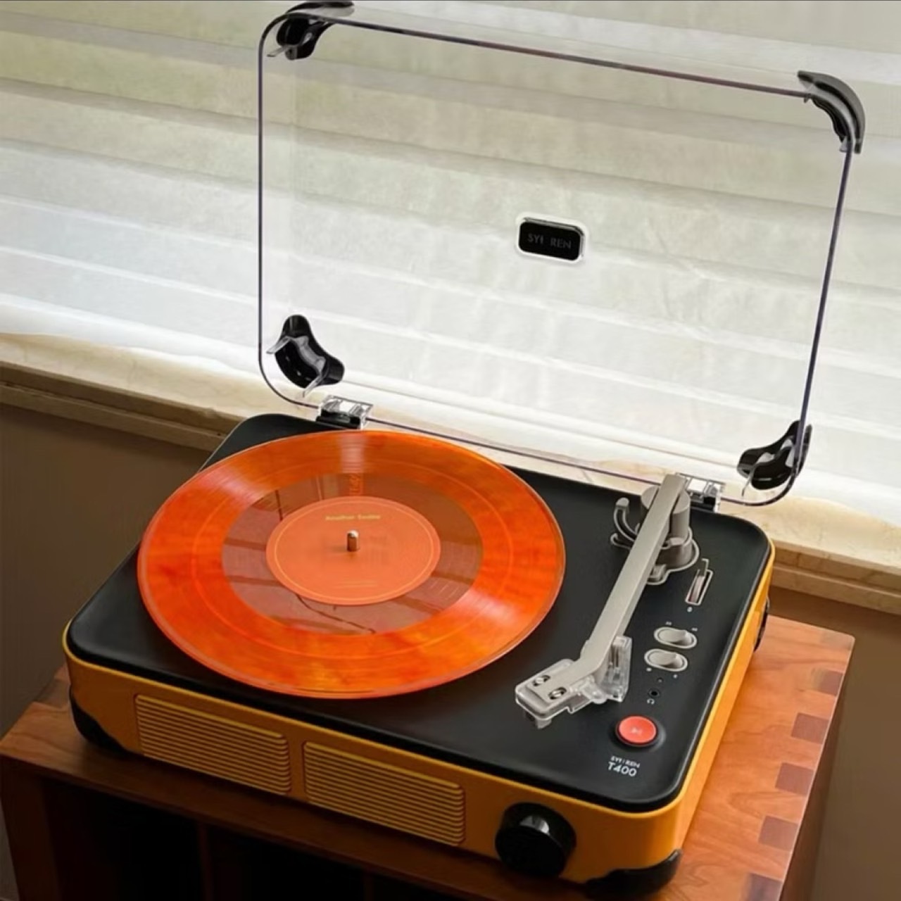 SYITREN T400是一款兼具美感和實用性的黑膠唱片機,它能夠為您帶來高品質的音樂體驗,同時也是一個時尚的家居裝飾