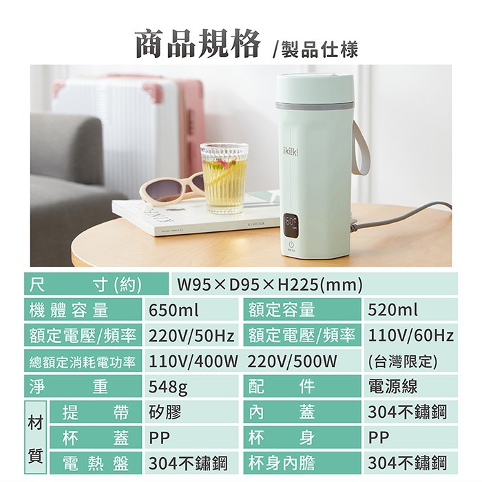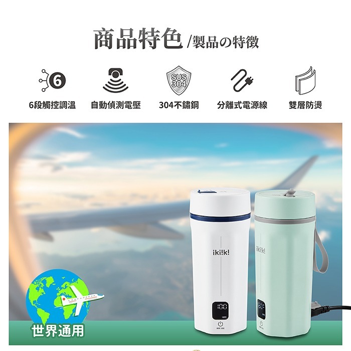 Ikiiki伊崎 國際電壓隨行快煮杯IK-TK4204(白)/ IK-TK4205(綠)