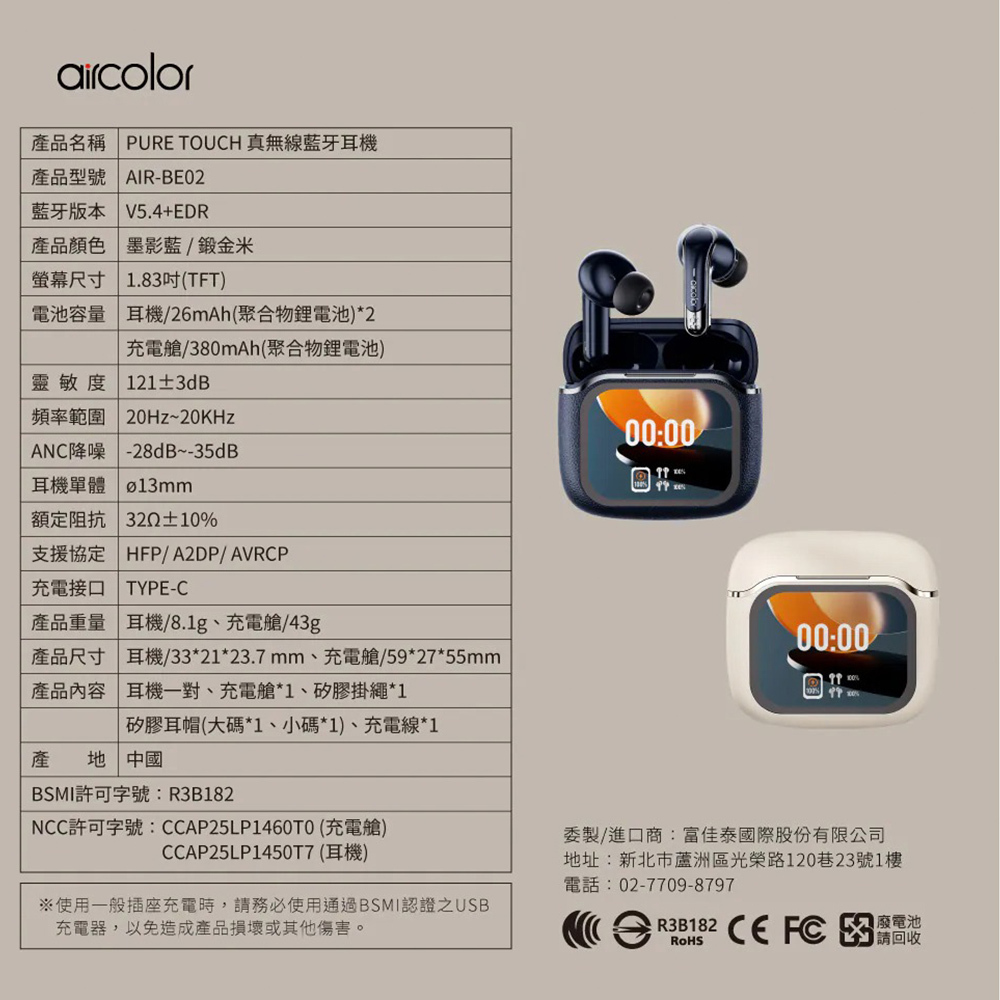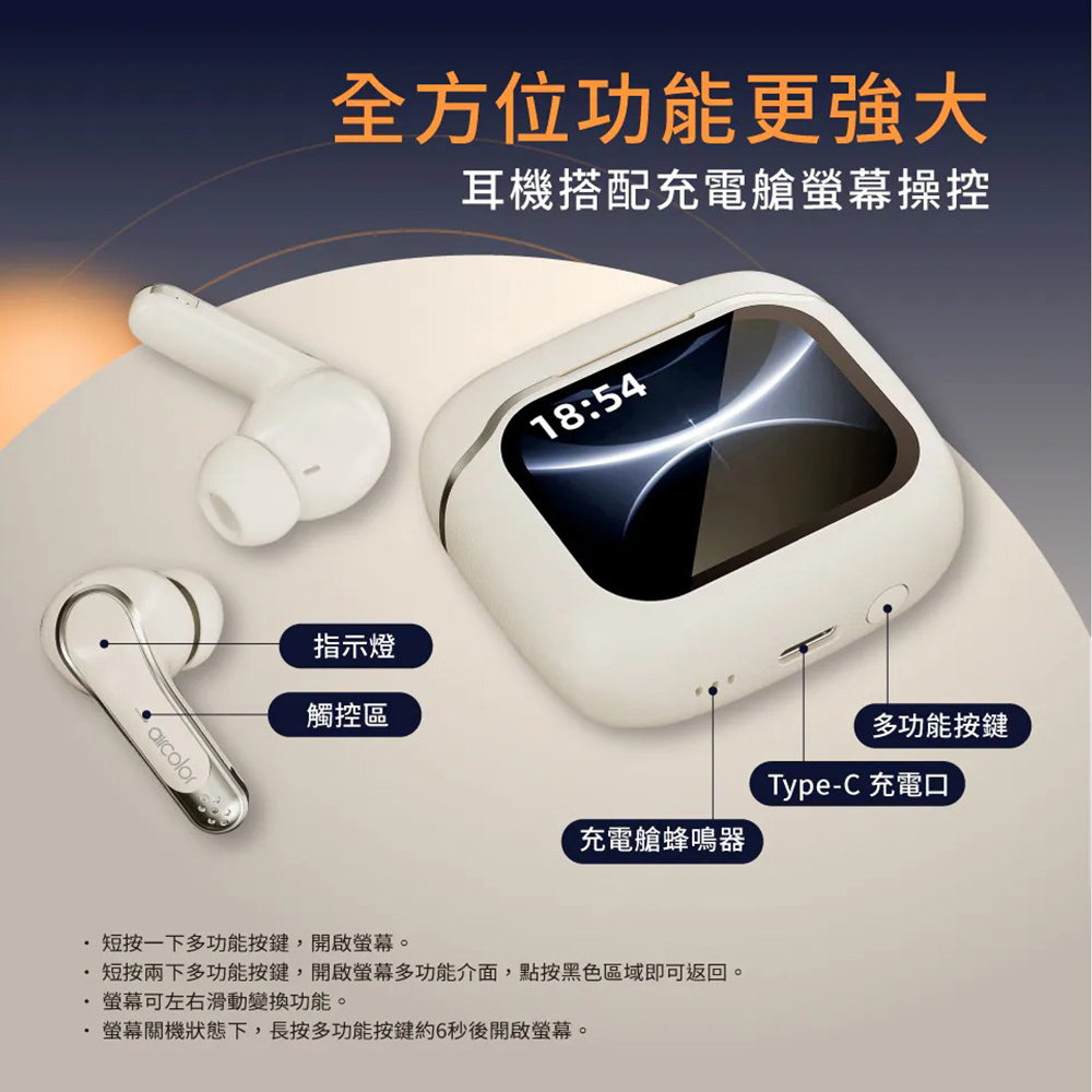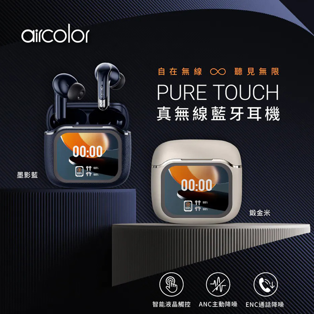 【aircolor】Pure Touch 觸控螢幕 真無線藍牙耳機|2款任選