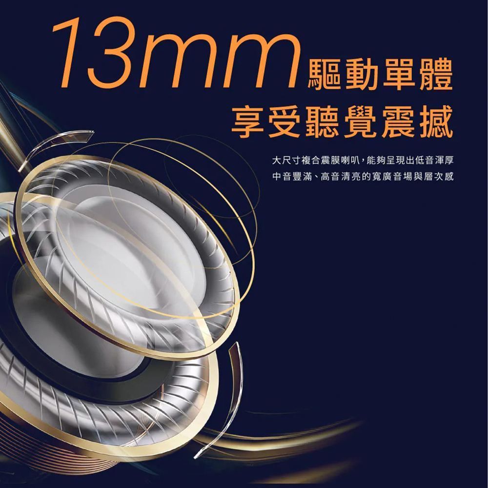 耳機單體:ø13mm 雙層複合震模降噪喇叭