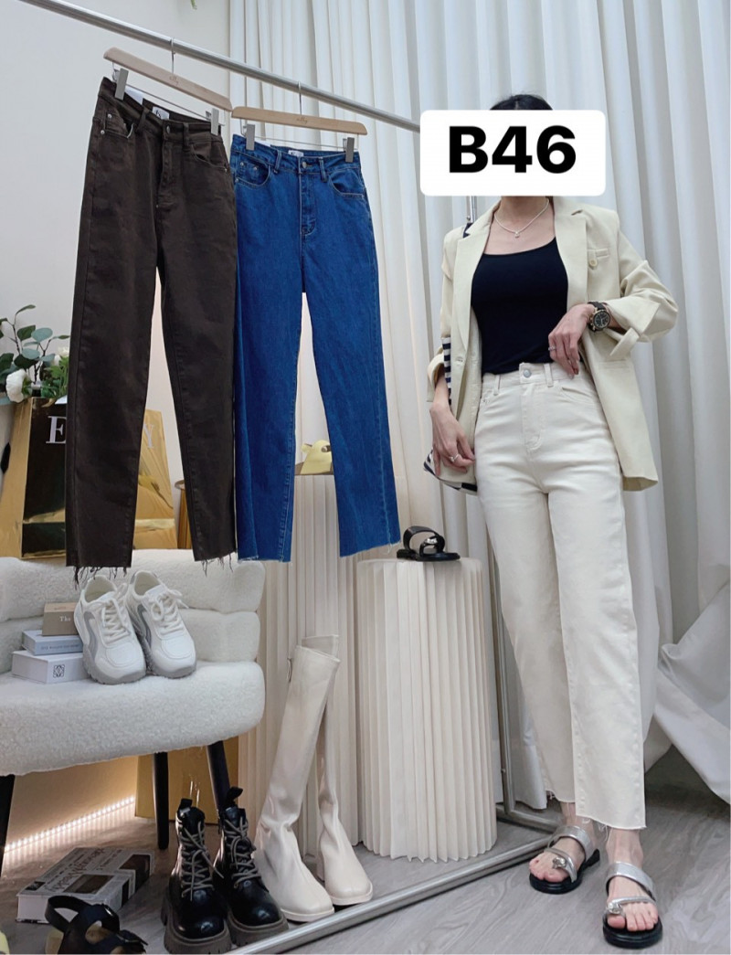 B46款 (7719)彈力後雙口帶休閒直筒牛仔褲$399