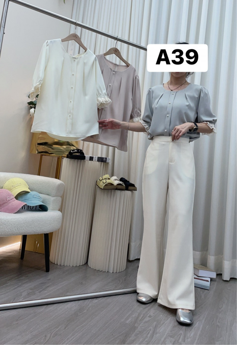 A39款 (20270)珍珠壓褶雪紡上衣$299