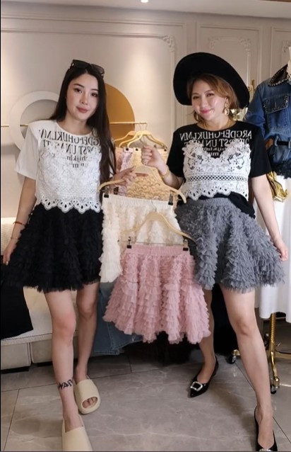 526581造型腰彈力短網紗裙$588-連線價488