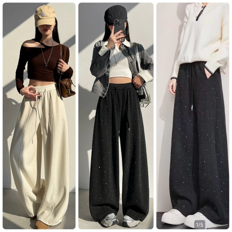 A314鬆弛感!鬆緊抽繩細閃鑽褲