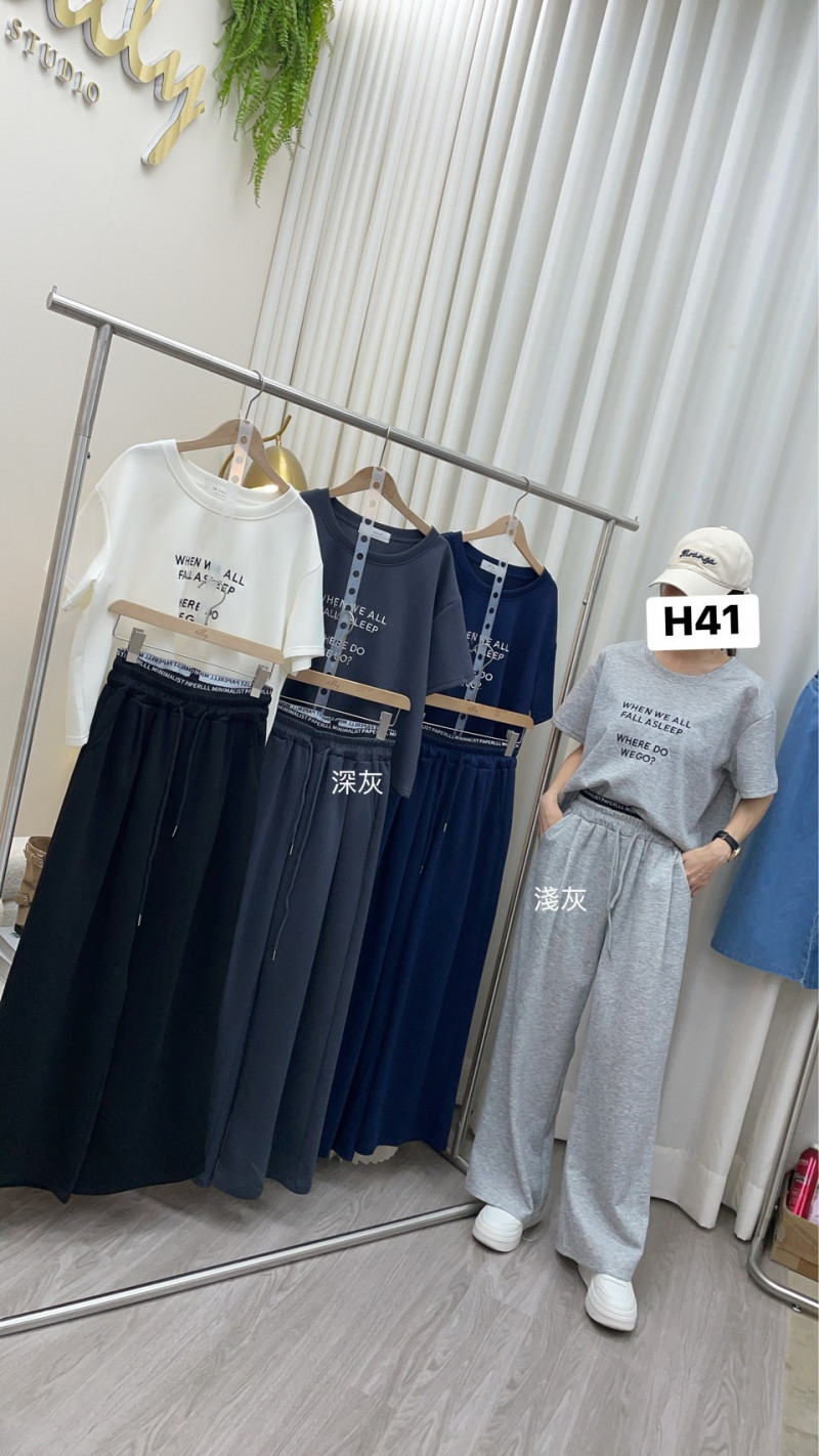 H41款 (90345)電繡字母美式褲腰頭綁繩套裝$399