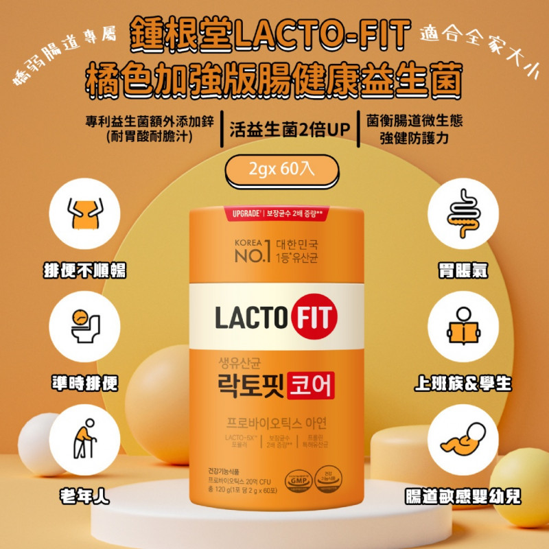 58.【兩瓶組】鍾根堂LACTO-FIT 新升級 韓國境內版橘色腸健康 益生菌2gx 60入