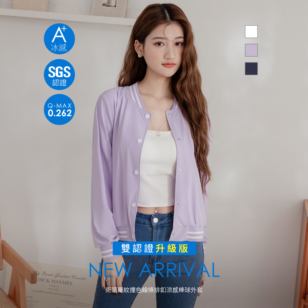 熱賣中🔥 即將售完【追加到貨】niceioi 街頭羅紋撞色線條排釦涼感棒球外套(SGS雙認證)