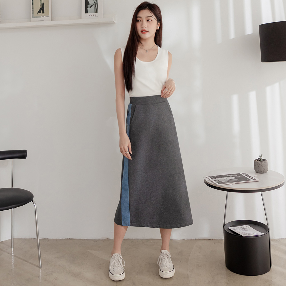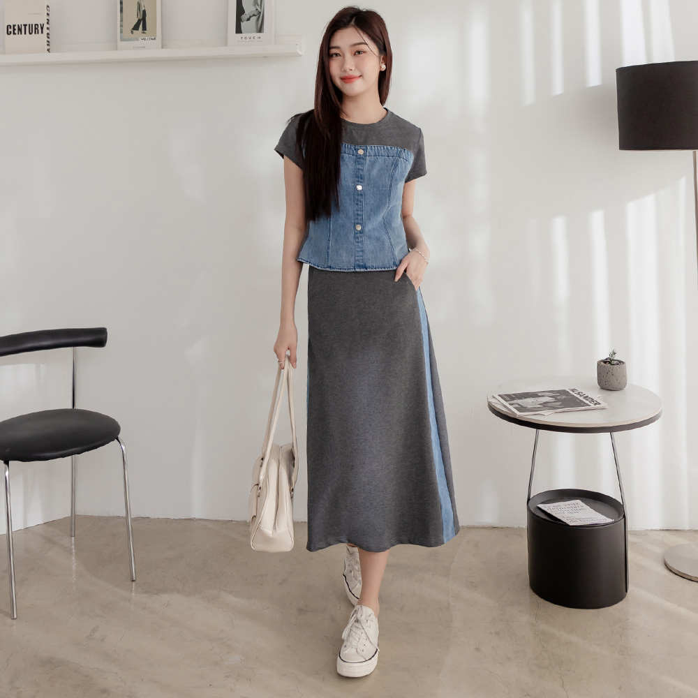 熱賣中🔥 即將售完【追加到貨】niceioi 青春少女丹寧線條拼接後開衩流線棉長裙
