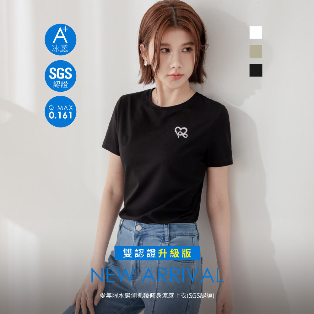熱賣中🔥 即將售完【追加到貨】niceioi 愛無限水鑽側抓皺修身涼感上衣(SGS認證)