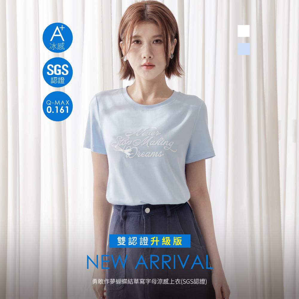 熱賣中🔥 即將售完niceioi 勇敢作夢蝴蝶結草寫字母涼感上衣(SGS認證)