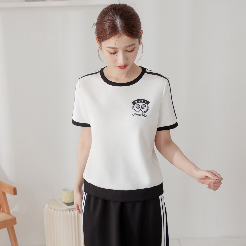 熱賣中🔥 即將售完niceioi 網球寶貝刺繡燙印線條撞色滾邊上衣
