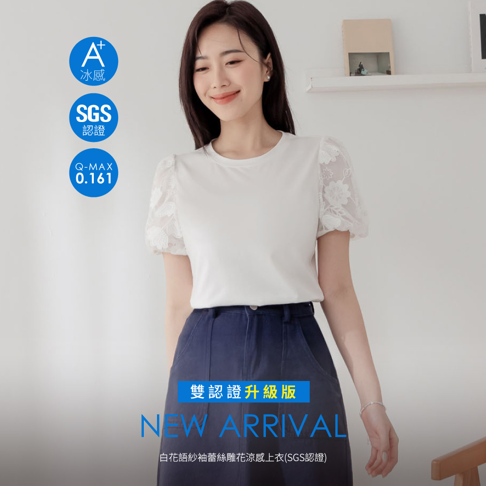 熱賣中🔥 即將售完【追加到貨】niceioi 白花語紗袖蕾絲雕花涼感上衣(SGS認證)