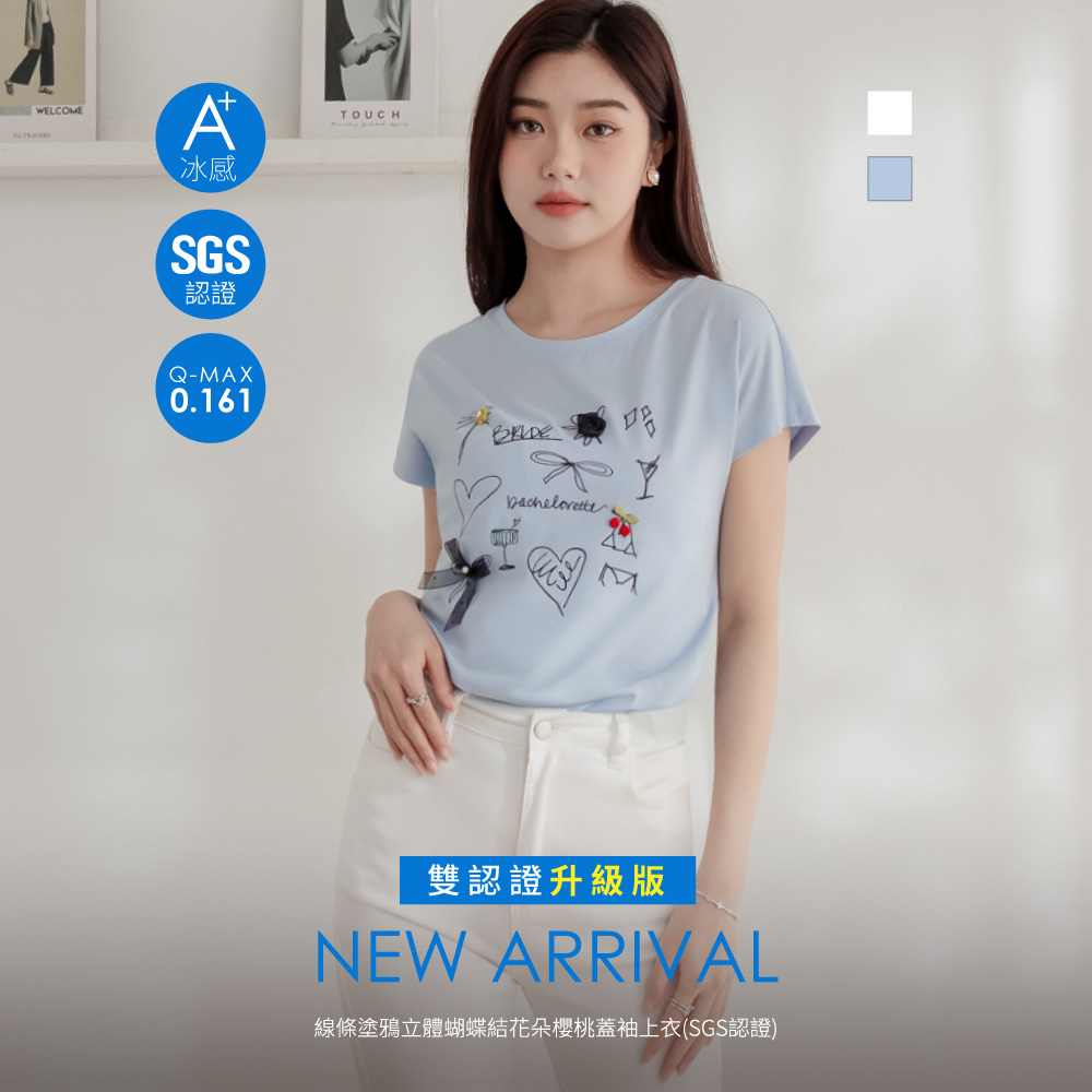熱賣中🔥 即將售完【追加到貨】niceioi 線條塗鴉立體蝴蝶結花朵櫻桃蓋袖上衣(SGS認證)