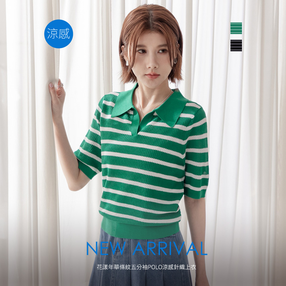 熱賣中🔥 即將售完niceioi 花樣年華條紋五分袖POLO涼感針織上衣