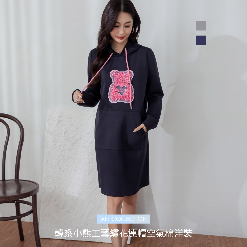 熱賣中🔥 即將售完【超值推薦】niceioi 韓系小熊工藝繡花連帽空氣棉洋裝 S-XXL