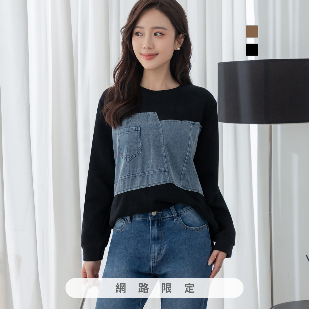 熱賣中🔥 即將售完niceioi 韓版CHIC丹寧色塊拼接長袖上衣