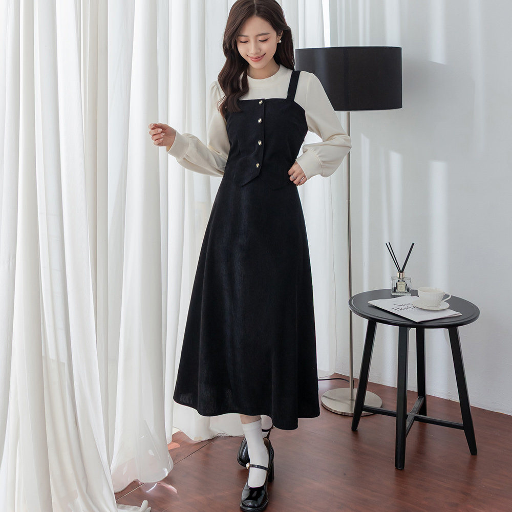 熱賣中🔥 即將售完niceioi 法式甜美金釦燈心絨假兩件洋裝