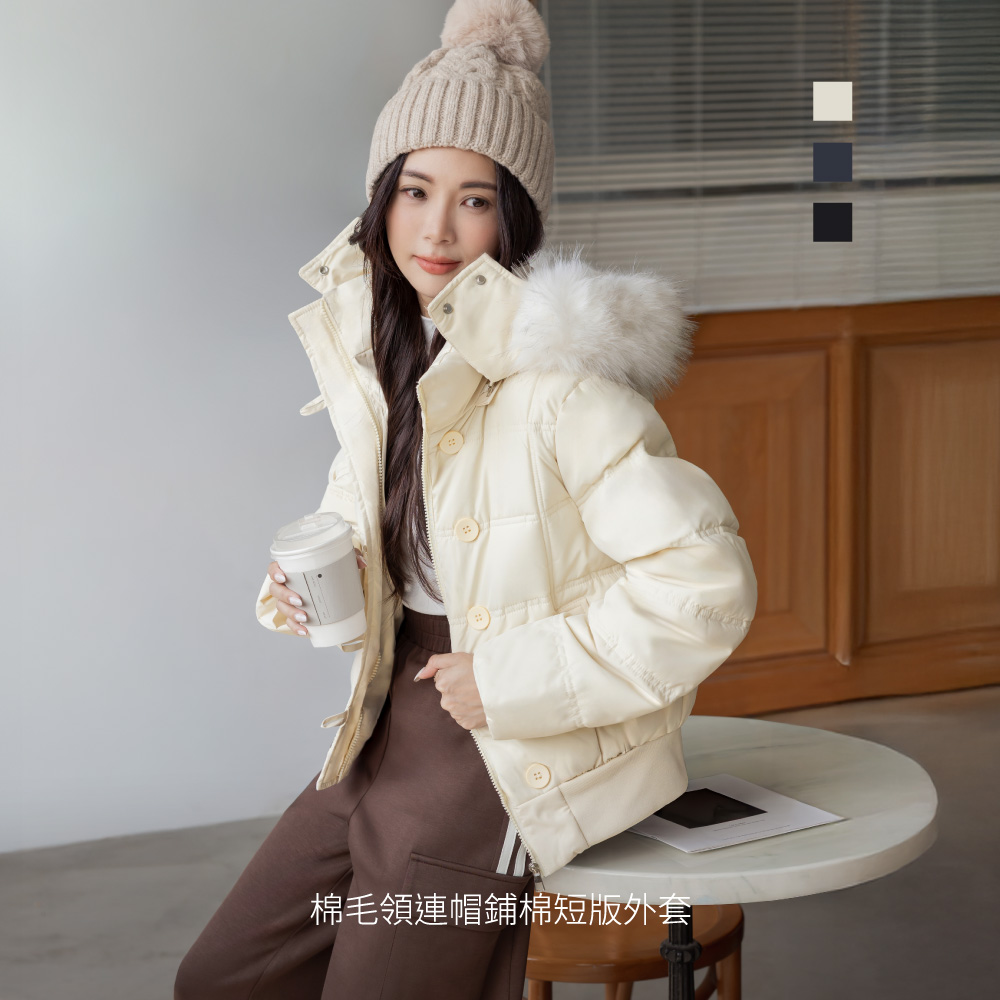 熱賣中🔥 即將售完【超值推薦】niceioi 首爾大女主棉毛領連帽鋪棉短版外套S-XL