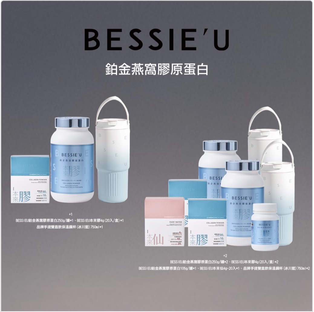 熱賣中🔥 即將售完(買一送一)(升級版)BESSIEU鉑金燕窩膠原蛋白250g(送)雙直飲保溫鋼杯-冰川藍