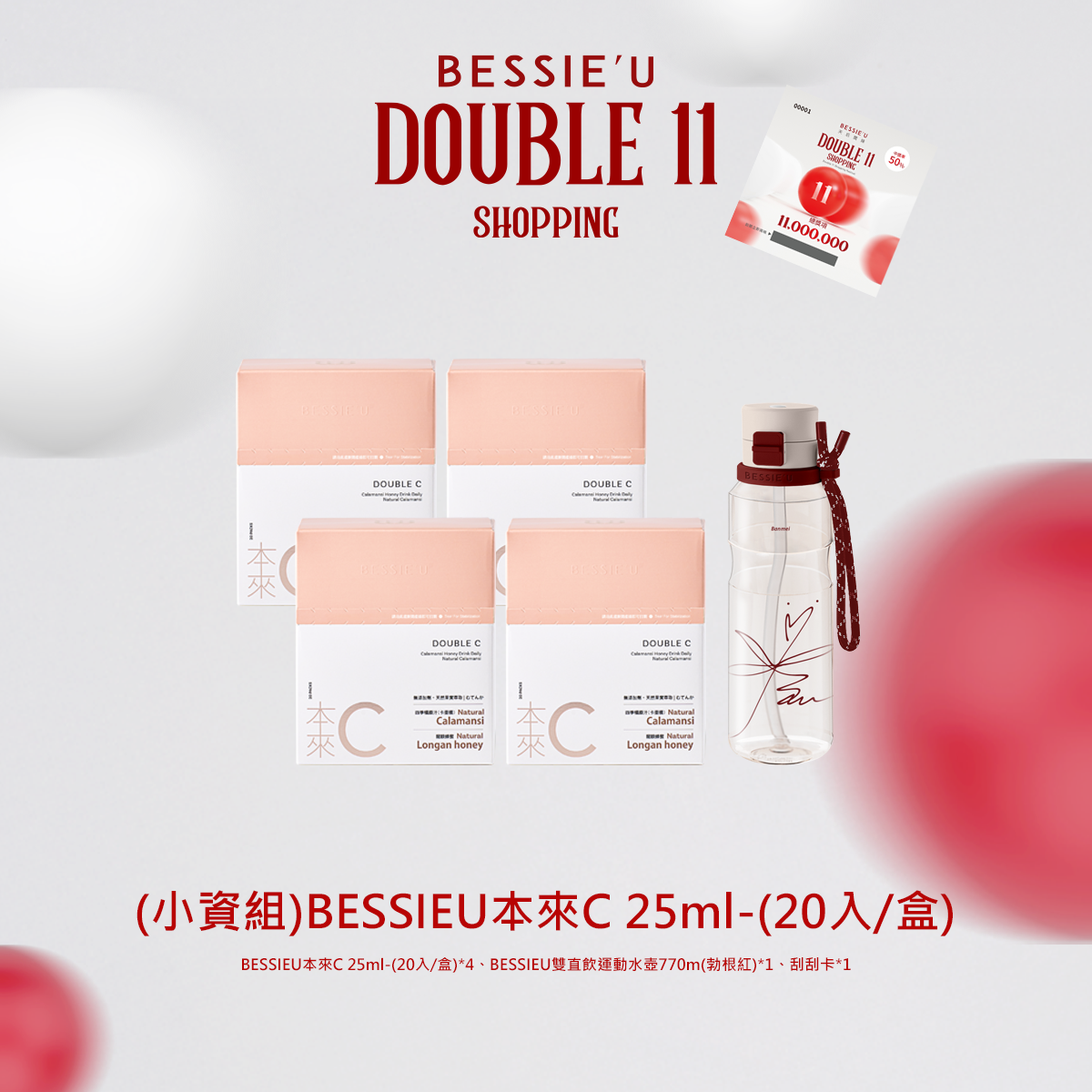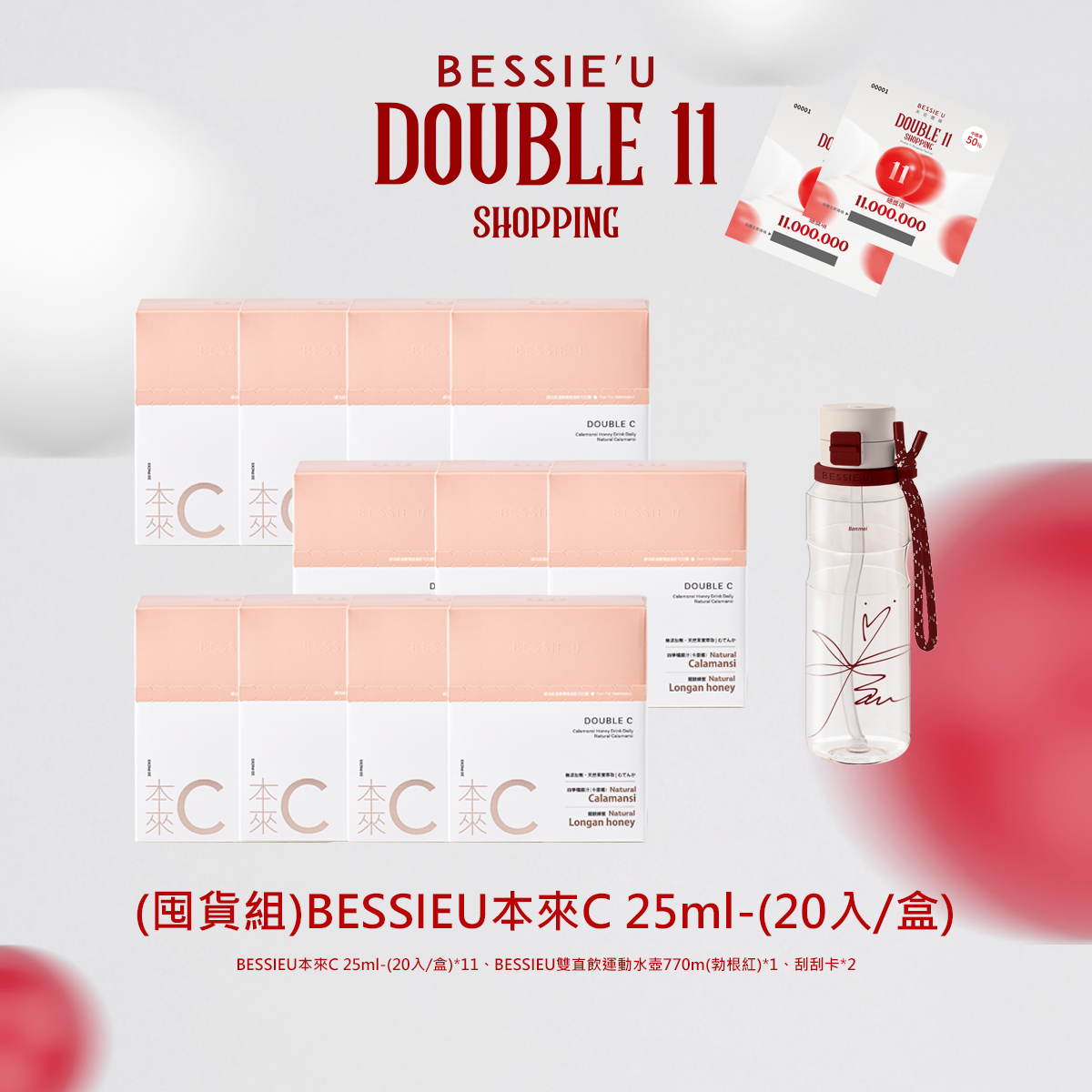 熱賣中🔥 即將售完(買一送一)BESSIEU本來C 25ml-20入(送)運動水壺770m(勃根紅)