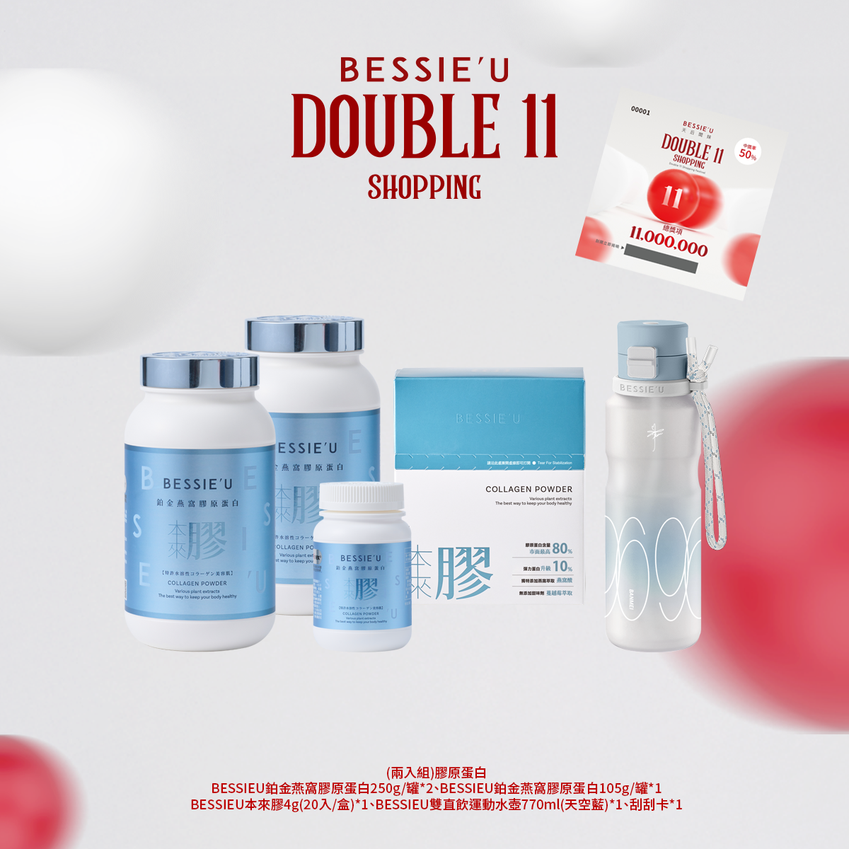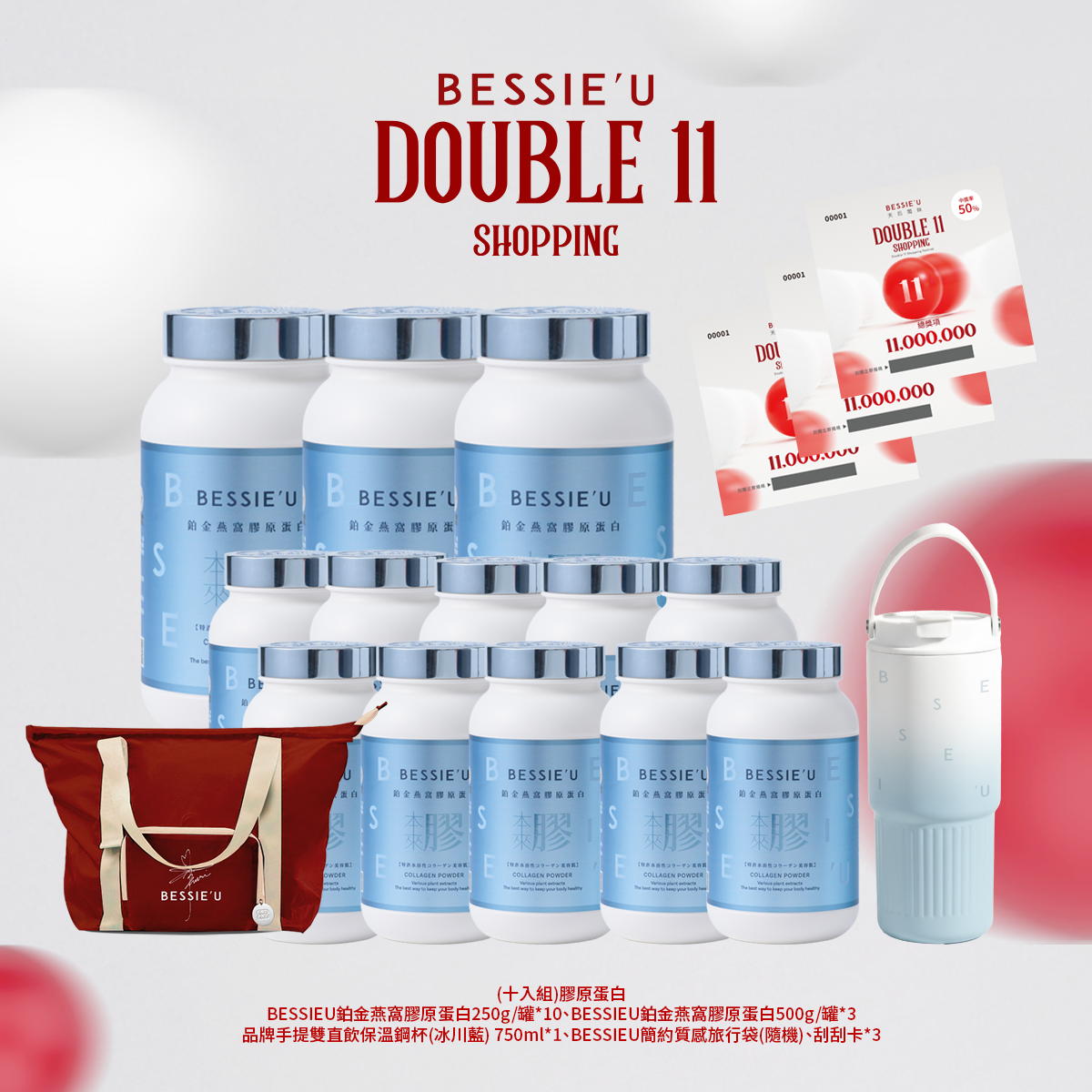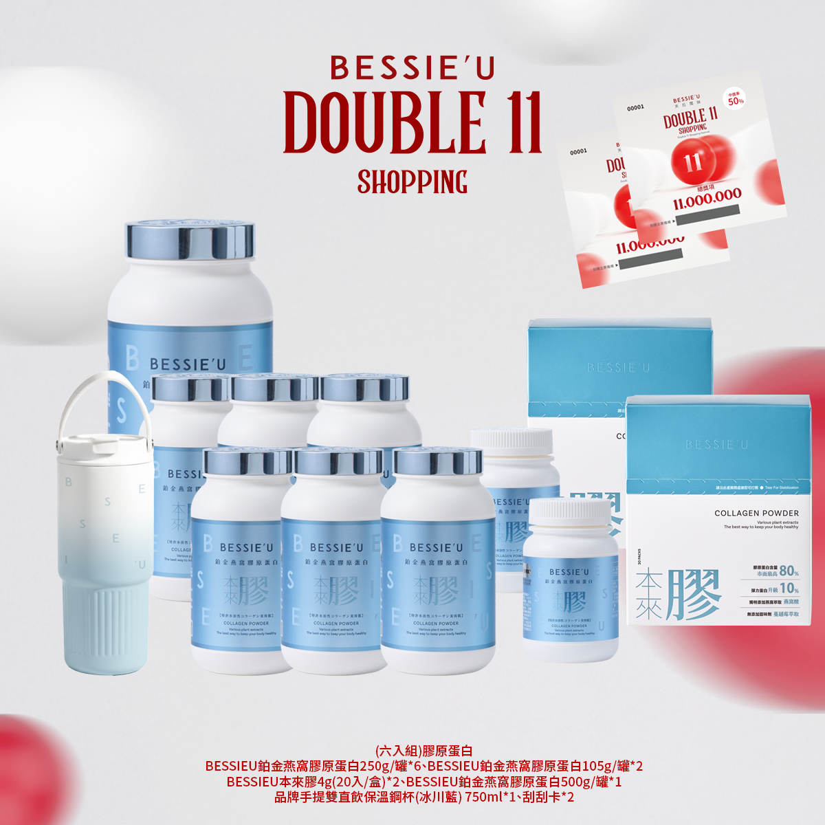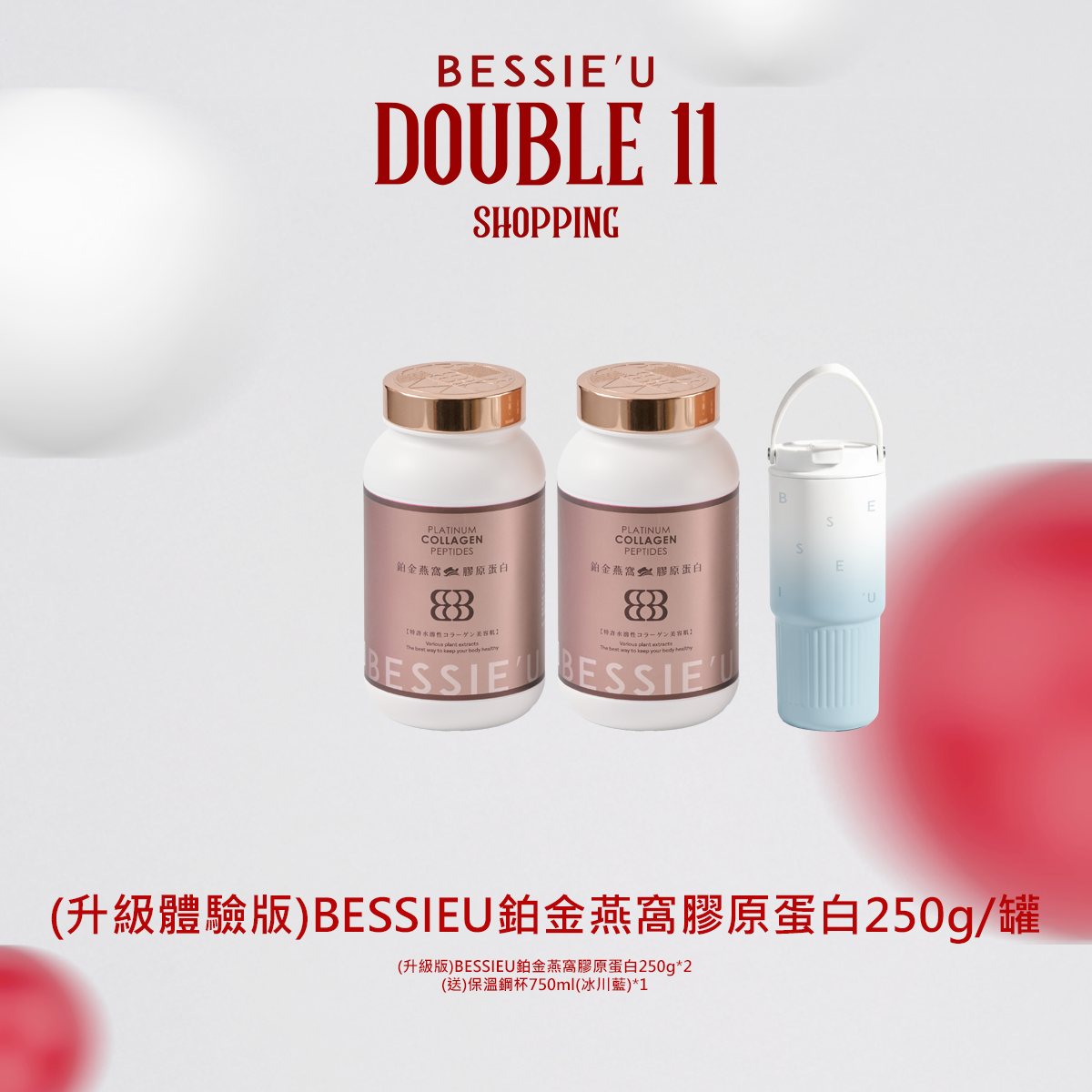 熱賣中🔥 即將售完(買一送一)(升級版)BESSIEU鉑金燕窩膠原蛋白250g(送)保溫鋼杯750ml(冰川藍)
