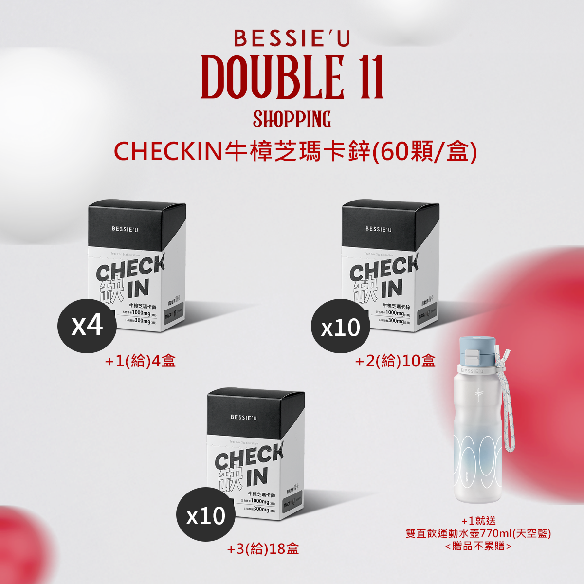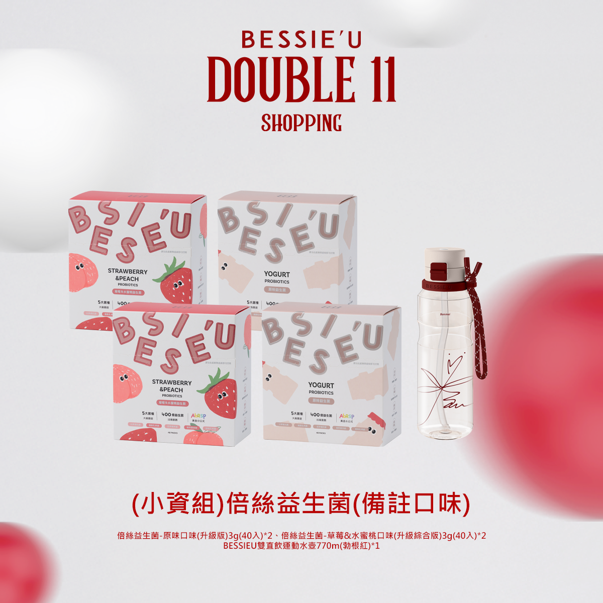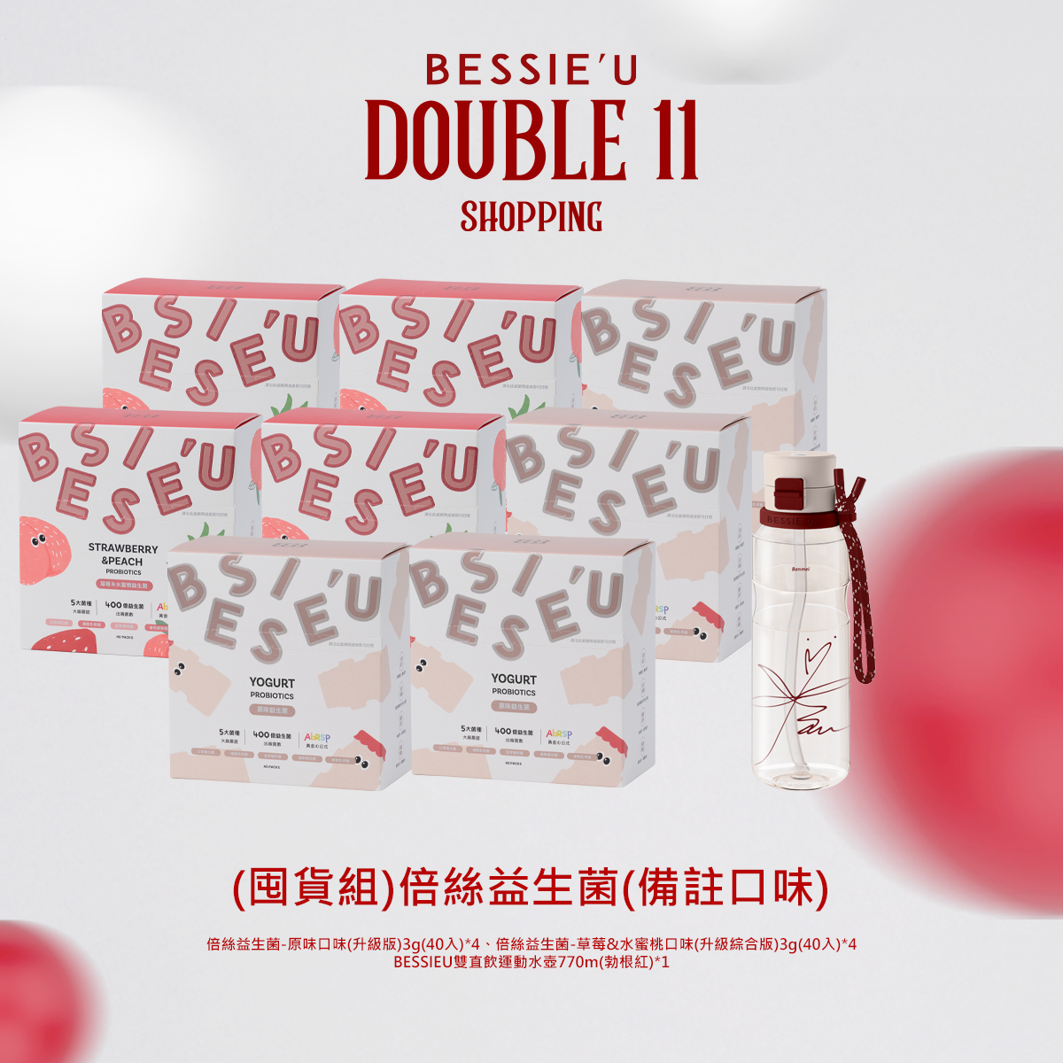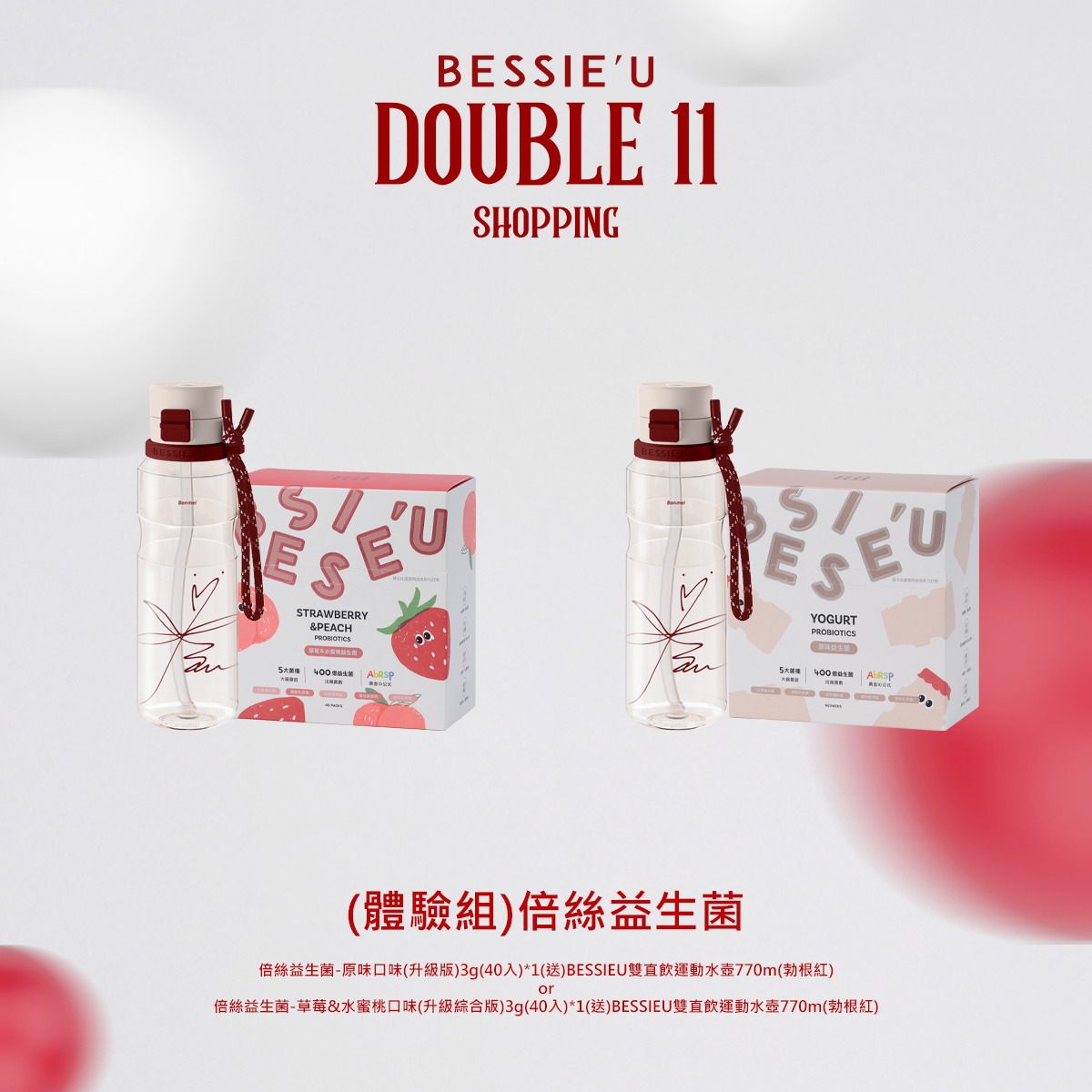 熱賣中🔥 即將售完(看備註)倍絲益生菌3g-40入(送)BESSIEU雙直飲運動水壺770m(勃根紅)