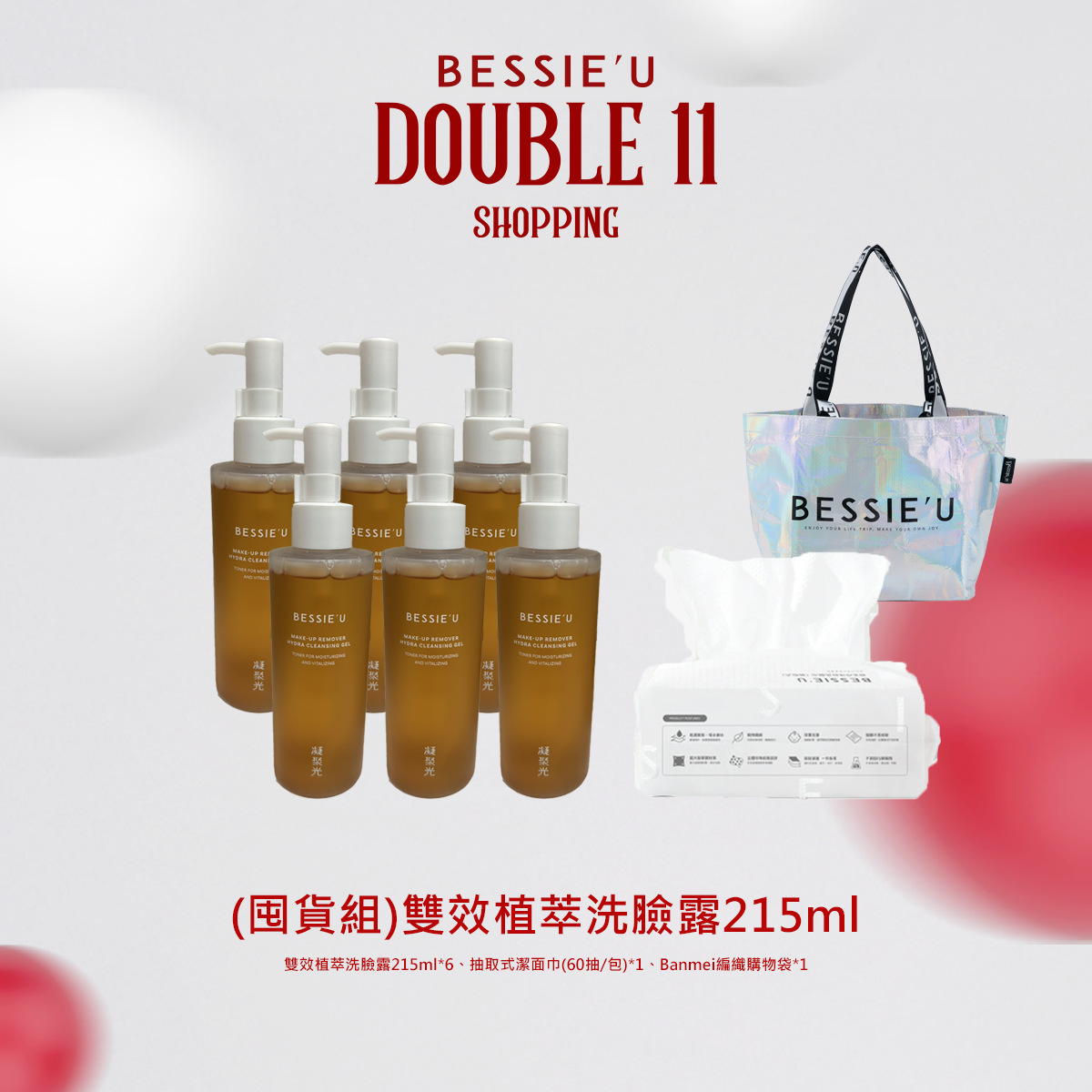 熱賣中🔥 即將售完(6瓶)雙效植萃洗臉露215ml(送)抽取式潔面巾(再送)(小)Banmei編織購物袋