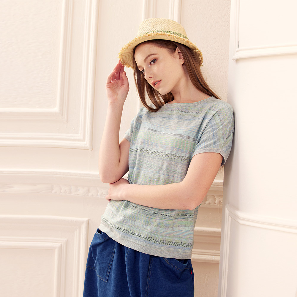 熱賣中🔥 即將售完有機棉小船領直紋短袖上衣
