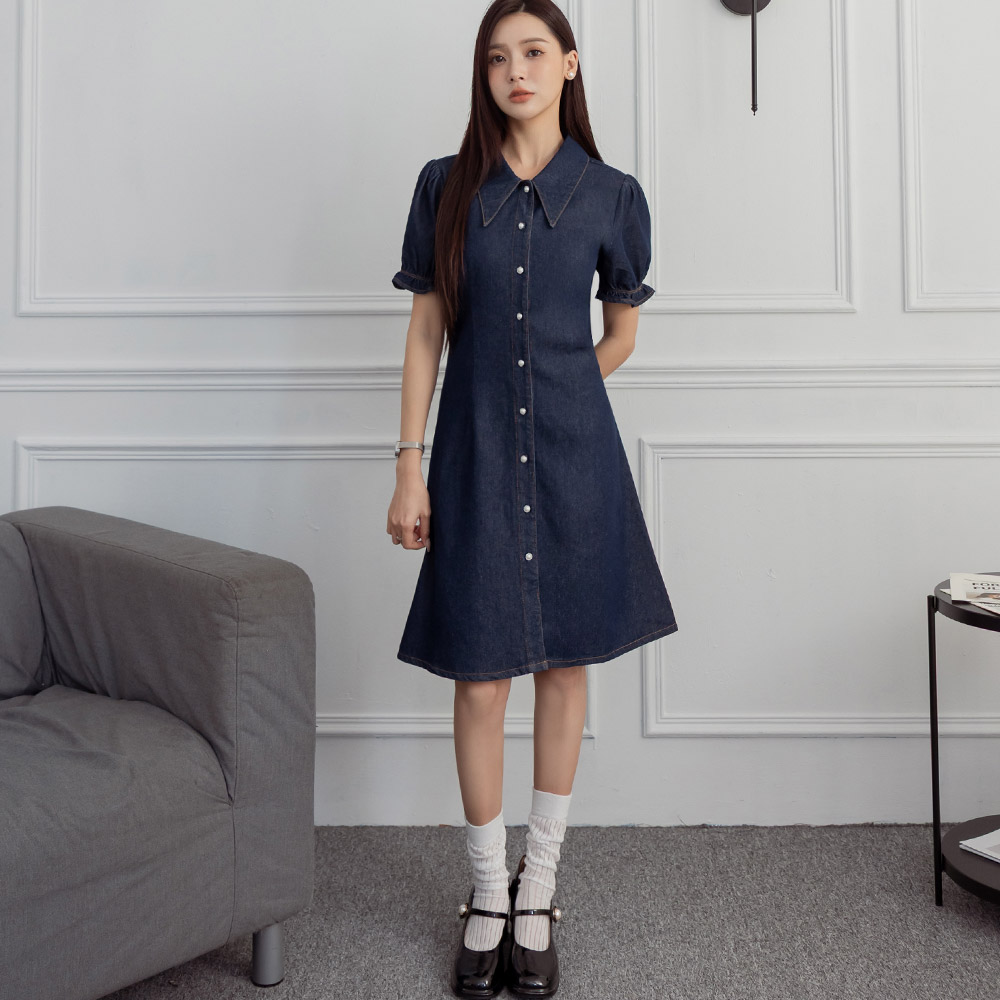 熱賣中🔥 即將售完niceioi 不羈優雅珍珠釦顯瘦丹寧洋裝