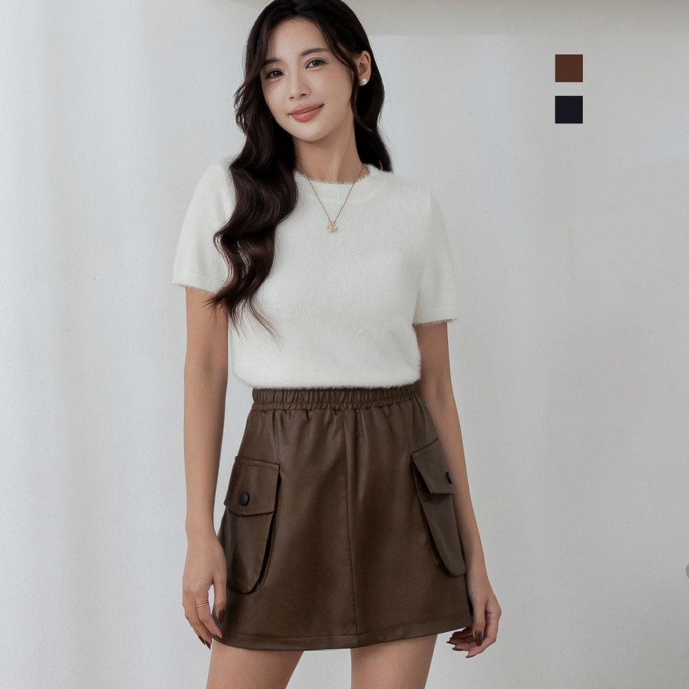 熱賣中🔥 即將售完niceioi 韓系街頭鬆緊腰頭工裝口袋仿皮短裙