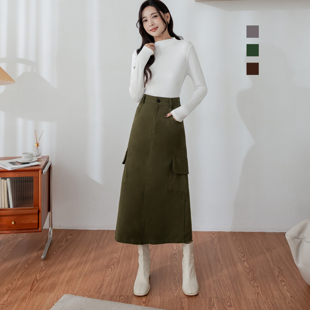 熱賣中🔥 即將售完niceioi 韓系工裝風大口袋A-line修身中長裙