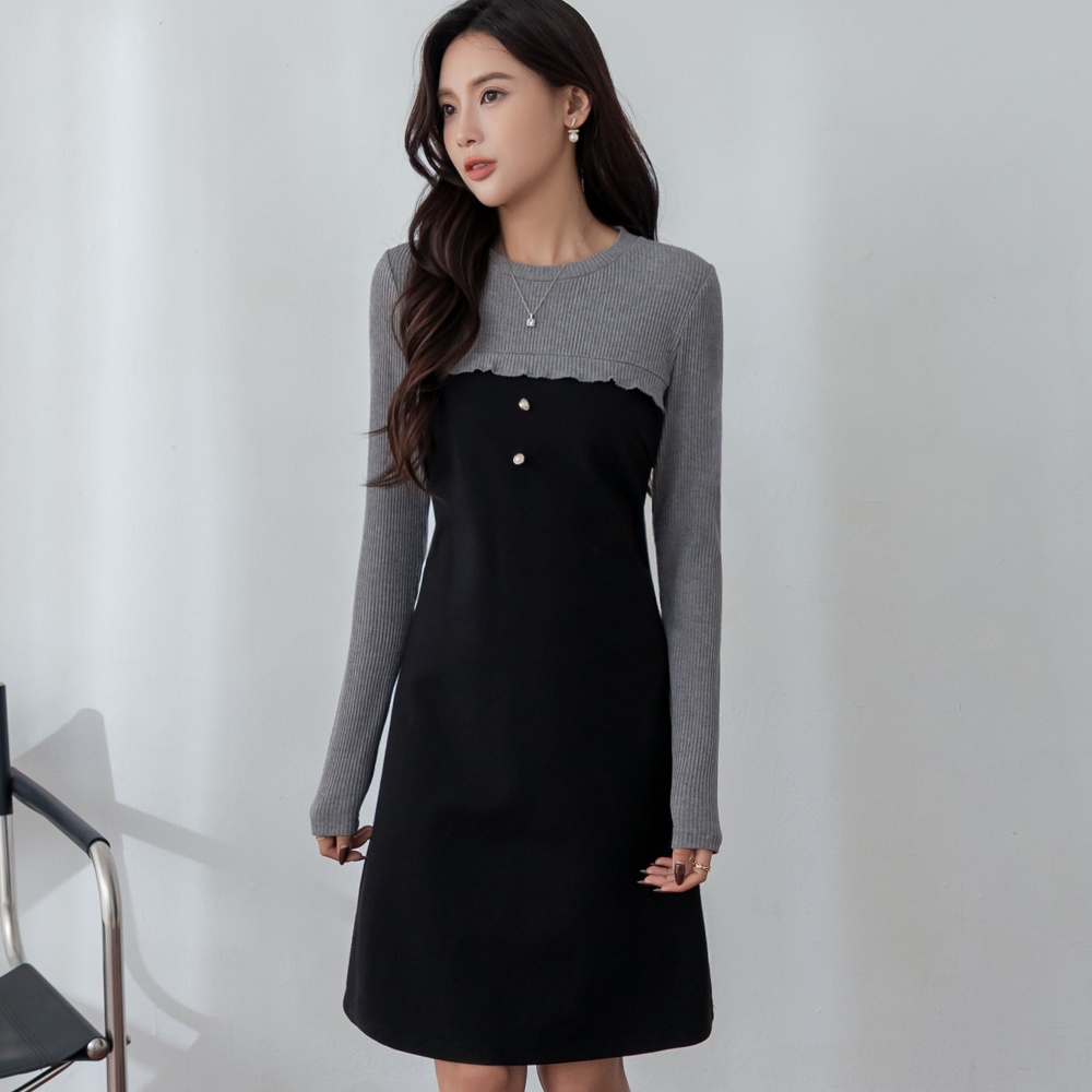 熱賣中🔥 即將售完niceioi 輕復古收腰顯瘦排釦拼接洋裝(附腰帶)
