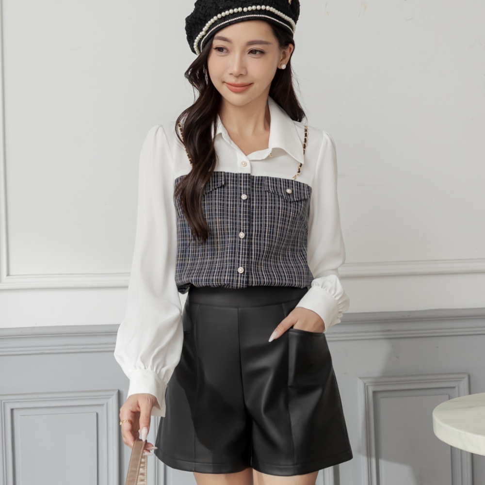 熱賣中🔥 即將售完niceioi 巴黎文青風翻領珍珠金鍊小香拼接襯衫