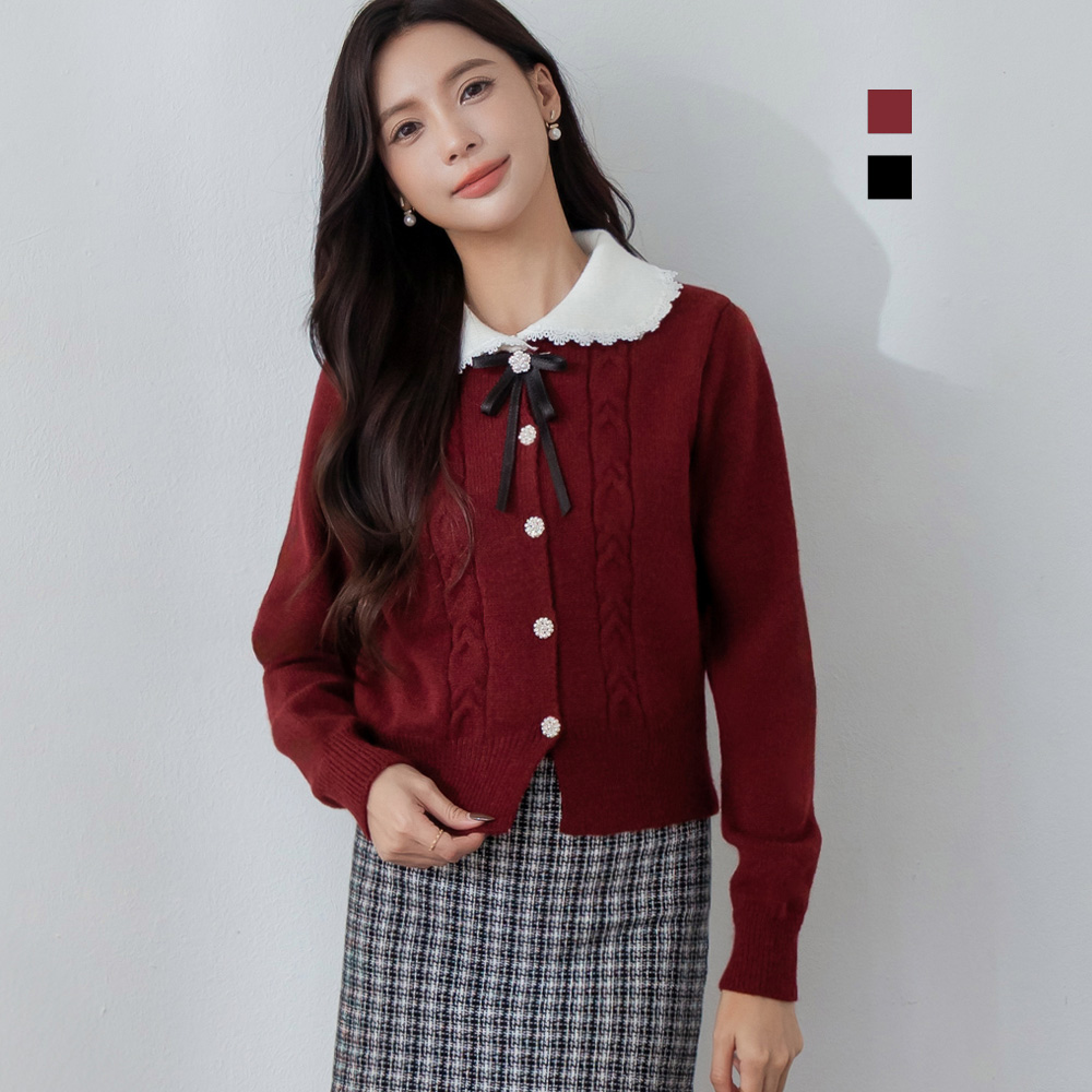 熱賣中🔥 即將售完niceioi 日系雜誌蝴蝶結別針珍珠釦包芯紗上衣