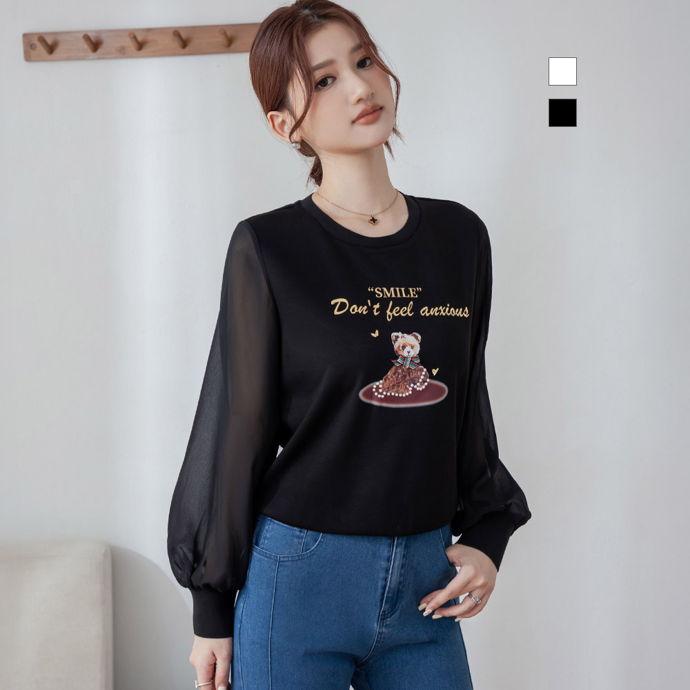 熱賣中🔥 即將售完【追加到貨】niceioi 萌熊珍珠雪紡公主袖空氣棉上衣