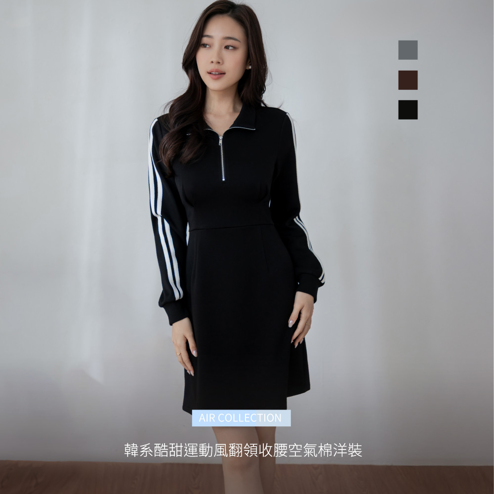 熱賣中🔥 即將售完【超值推薦】niceioi 韓系酷甜運動風翻領收腰空氣棉洋裝 S-XL