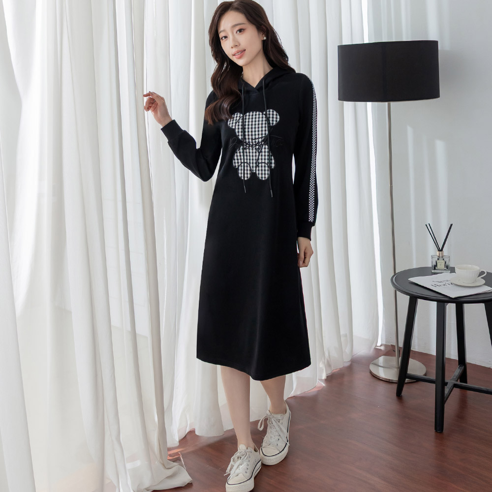 熱賣中🔥 即將售完niceioi 格紋小熊抽繩連帽撞色滾邊修身洋裝