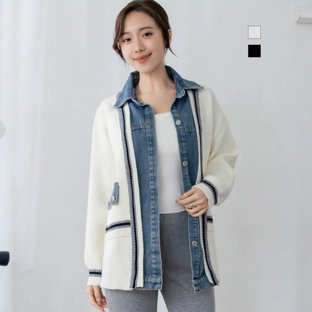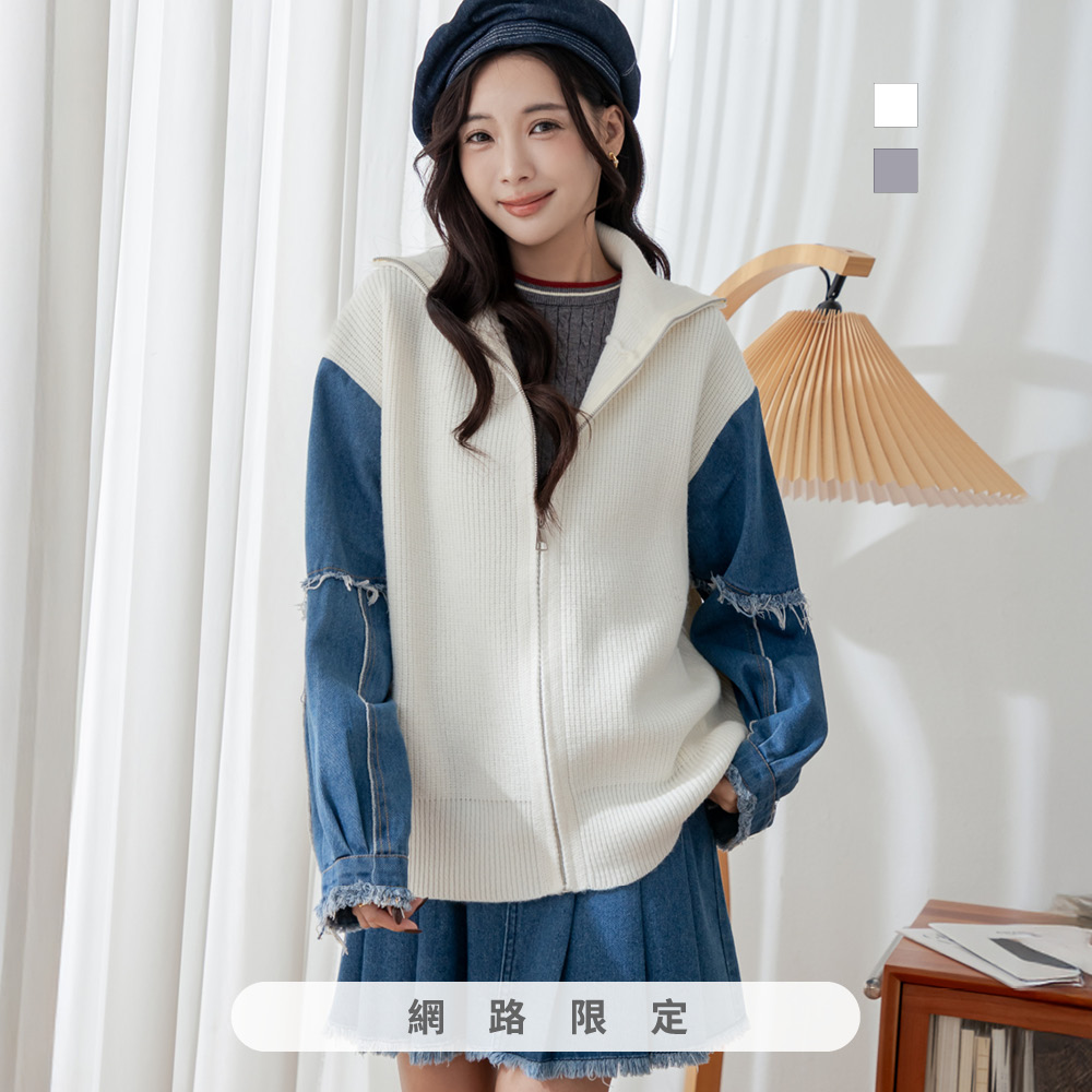 熱賣中🔥 即將售完niceioi 率性歐膩拼接丹寧開襟針織外套