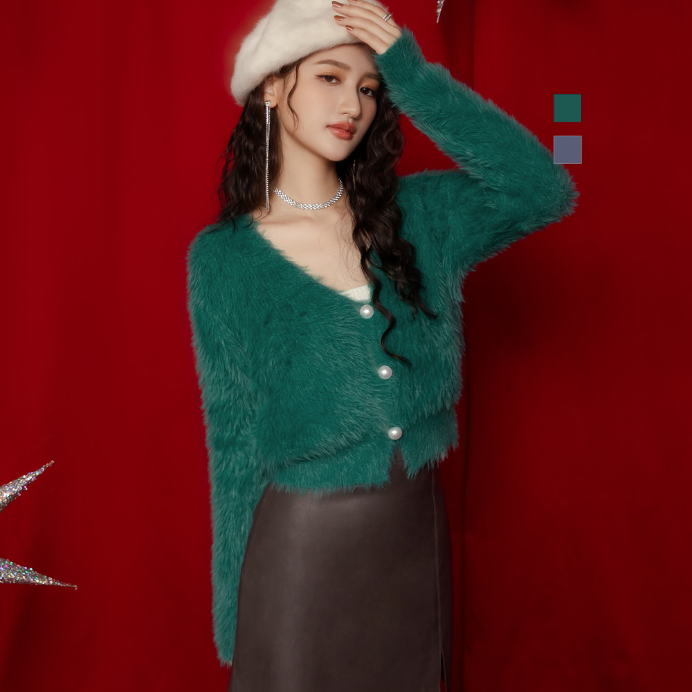 熱賣中🔥 即將售完niceioi 微光閃耀亮絲仿貂毛V領毛衣