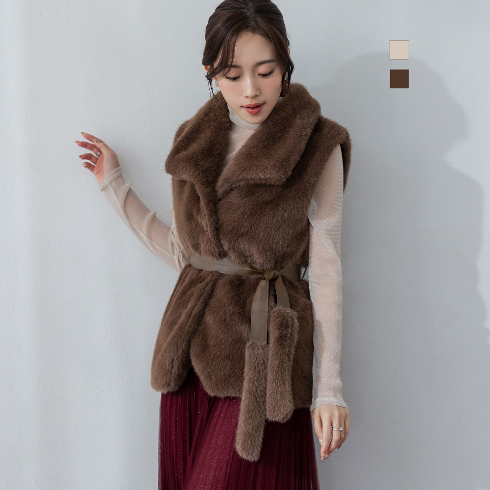 熱賣中🔥 即將售完niceioi 街拍時尚貴氣貂毛背心外套(附綁帶)